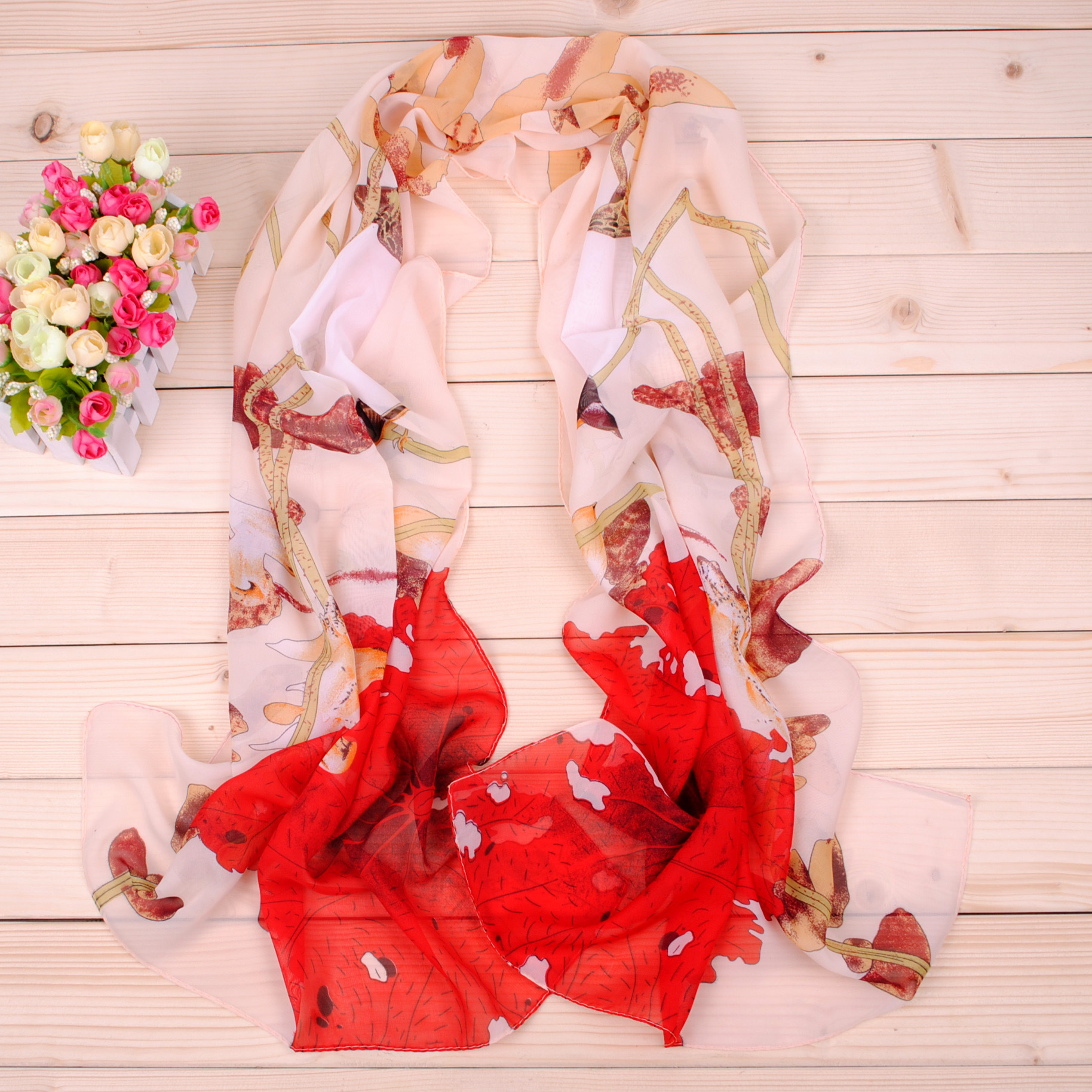 Name: Birds Flowers Chiffon Scarf X019