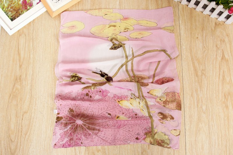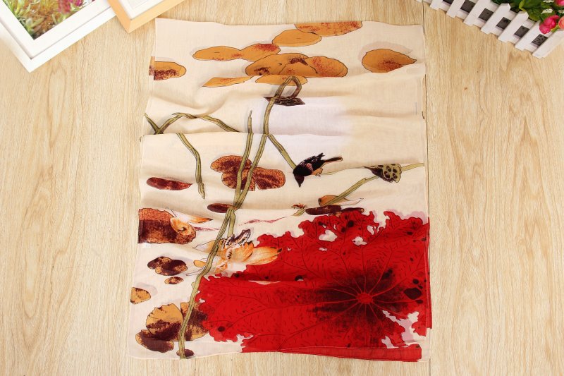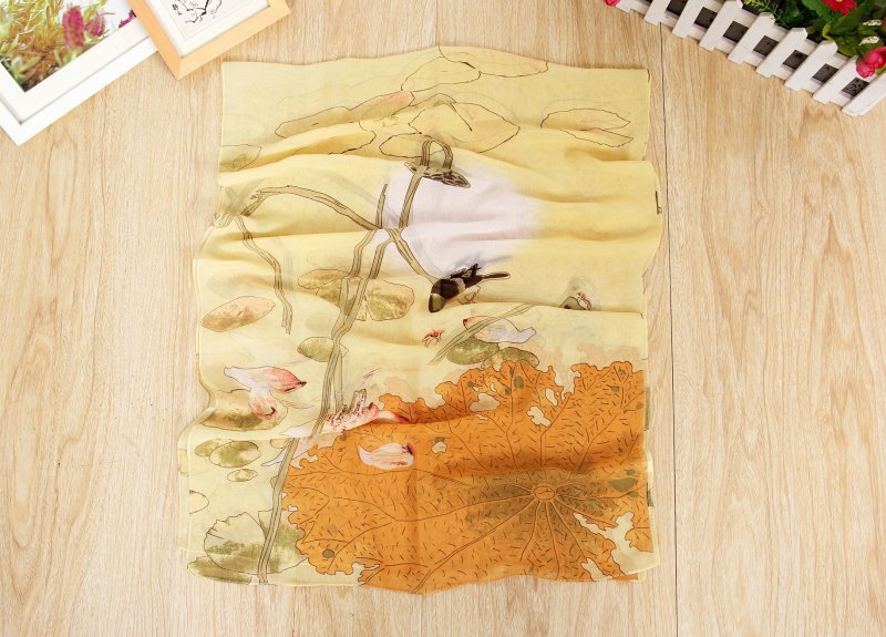 Details:160 50cm Birds And Lotus Flowers Print Floral X019 Fashion Ladies Scarves Chiffon Scarf Womens Shawl