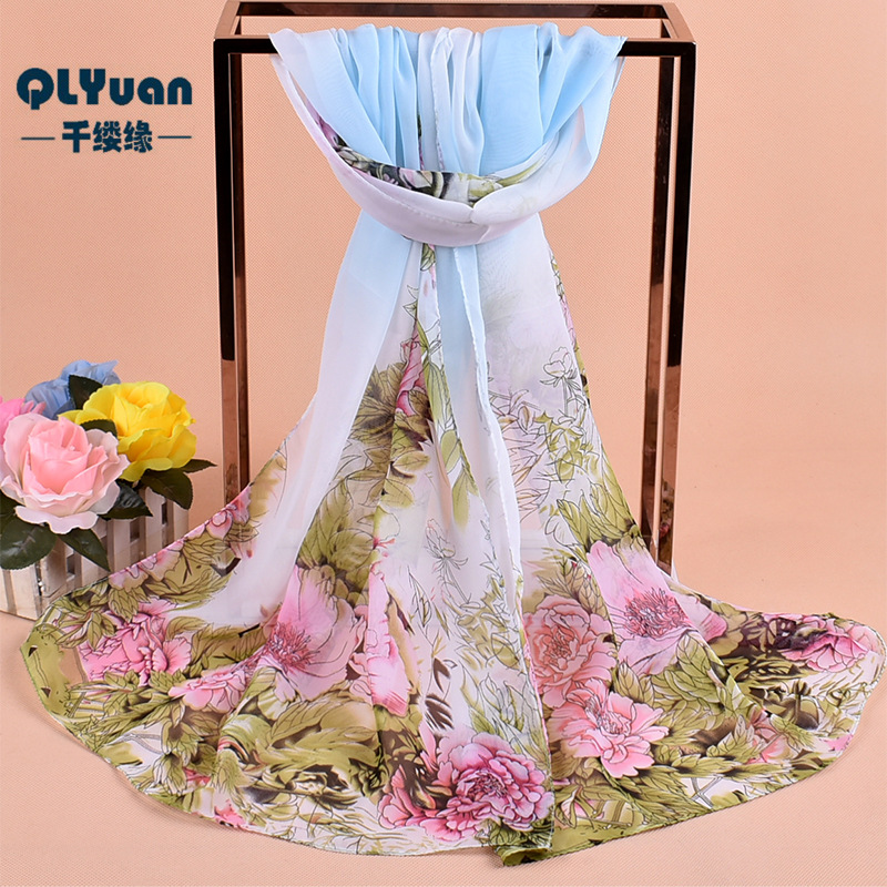 Details:160 50cm Elegant Large Flowers Print Floral X314 Fashion Ladies Scarves Chiffon Scarf Womens Shawls