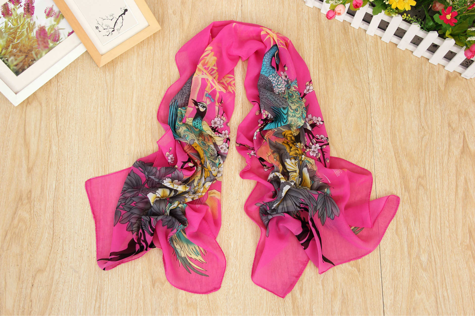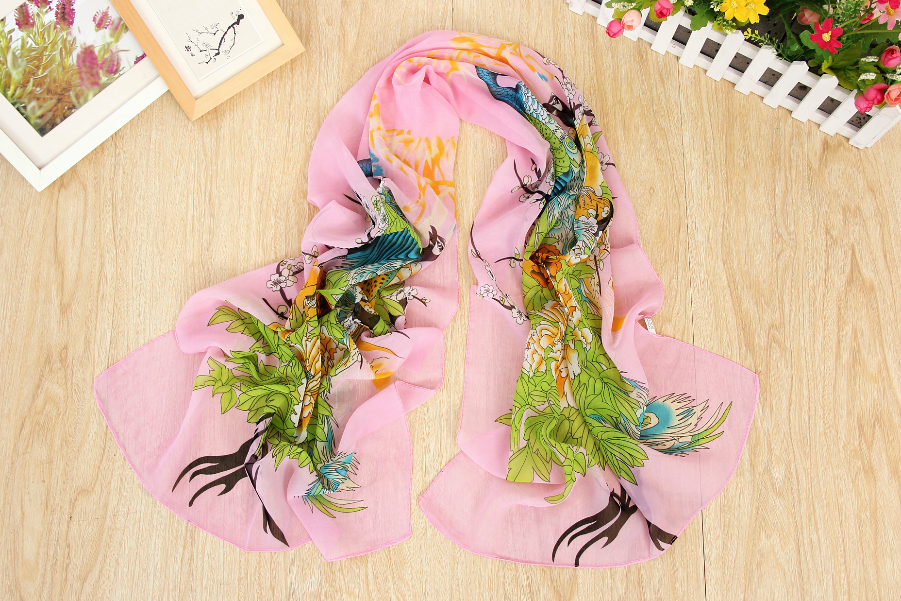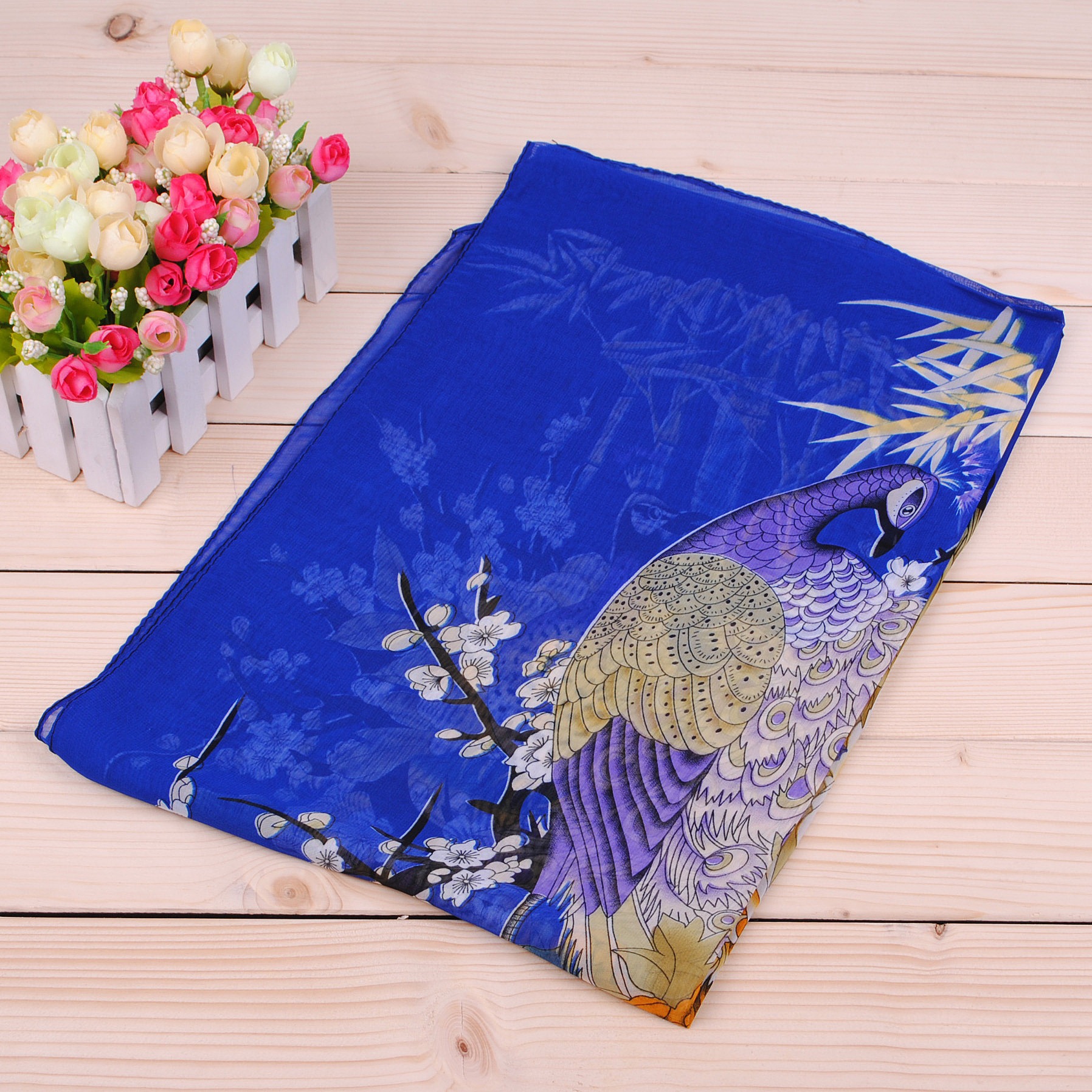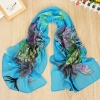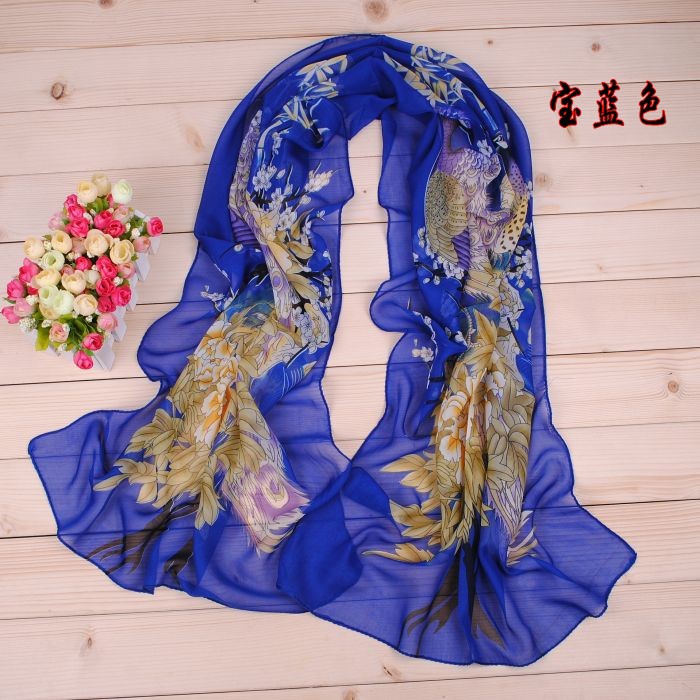160 50cm Peacock And Flowers Print X010 Fashion Ladies Scarves Chiffon Scarf Womens Shawls