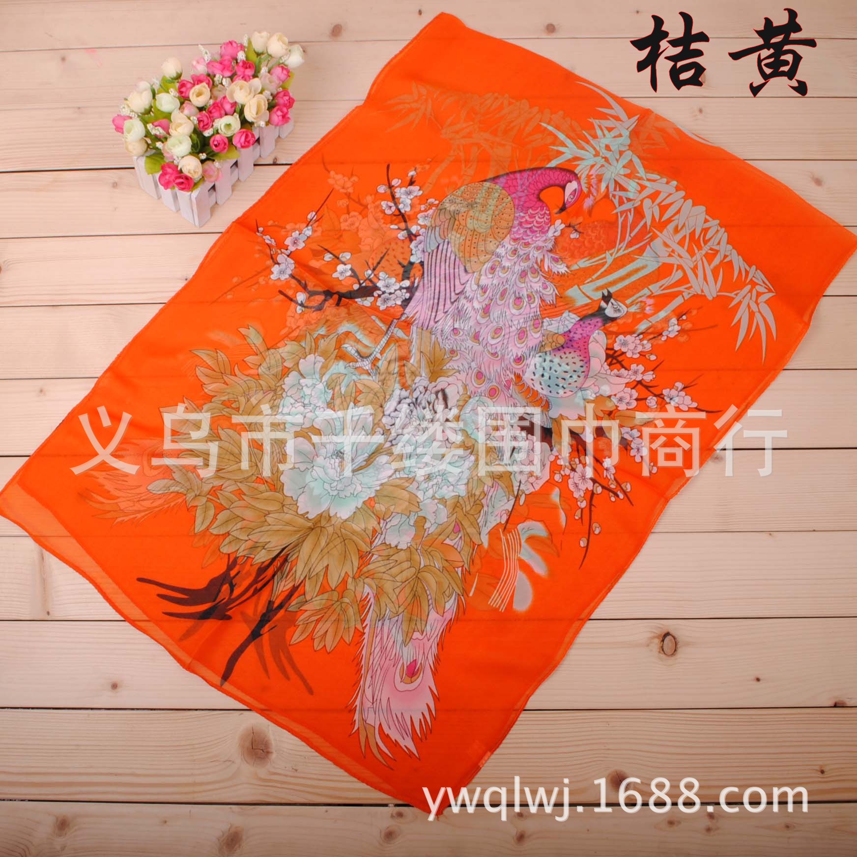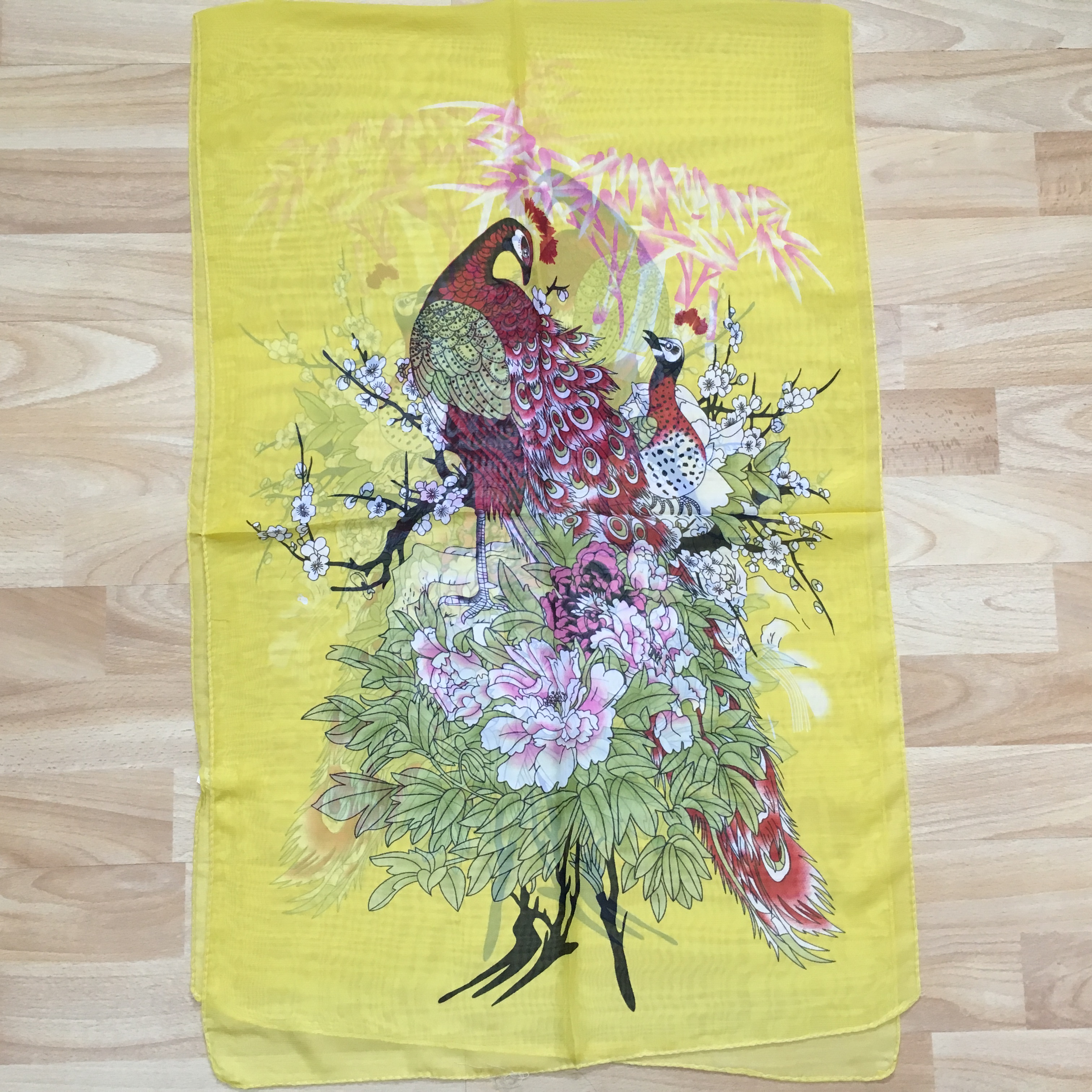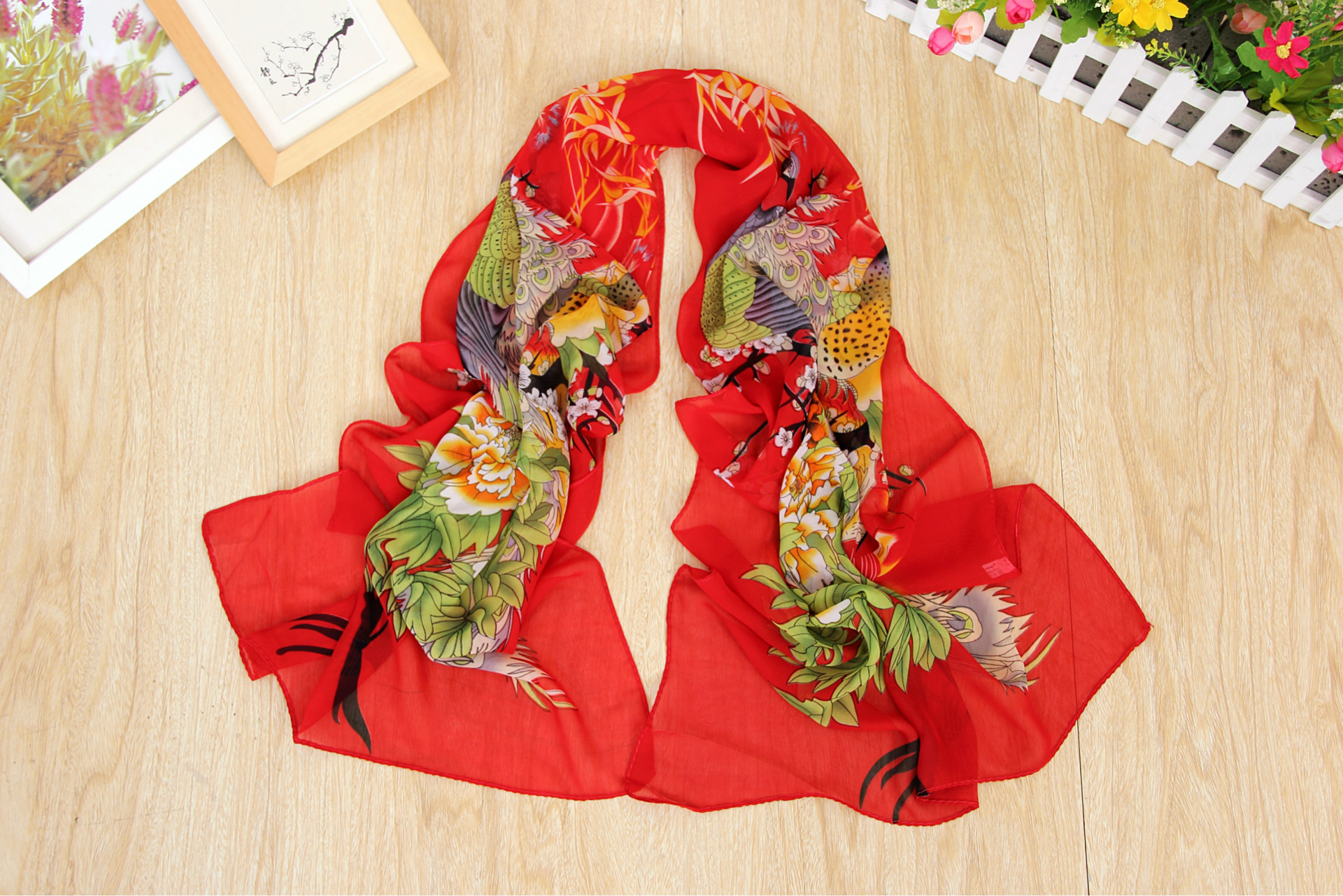 160 50cm Peacock And Flowers Print X010 Fashion Ladies Scarves Chiffon Scarf Womens Shawls