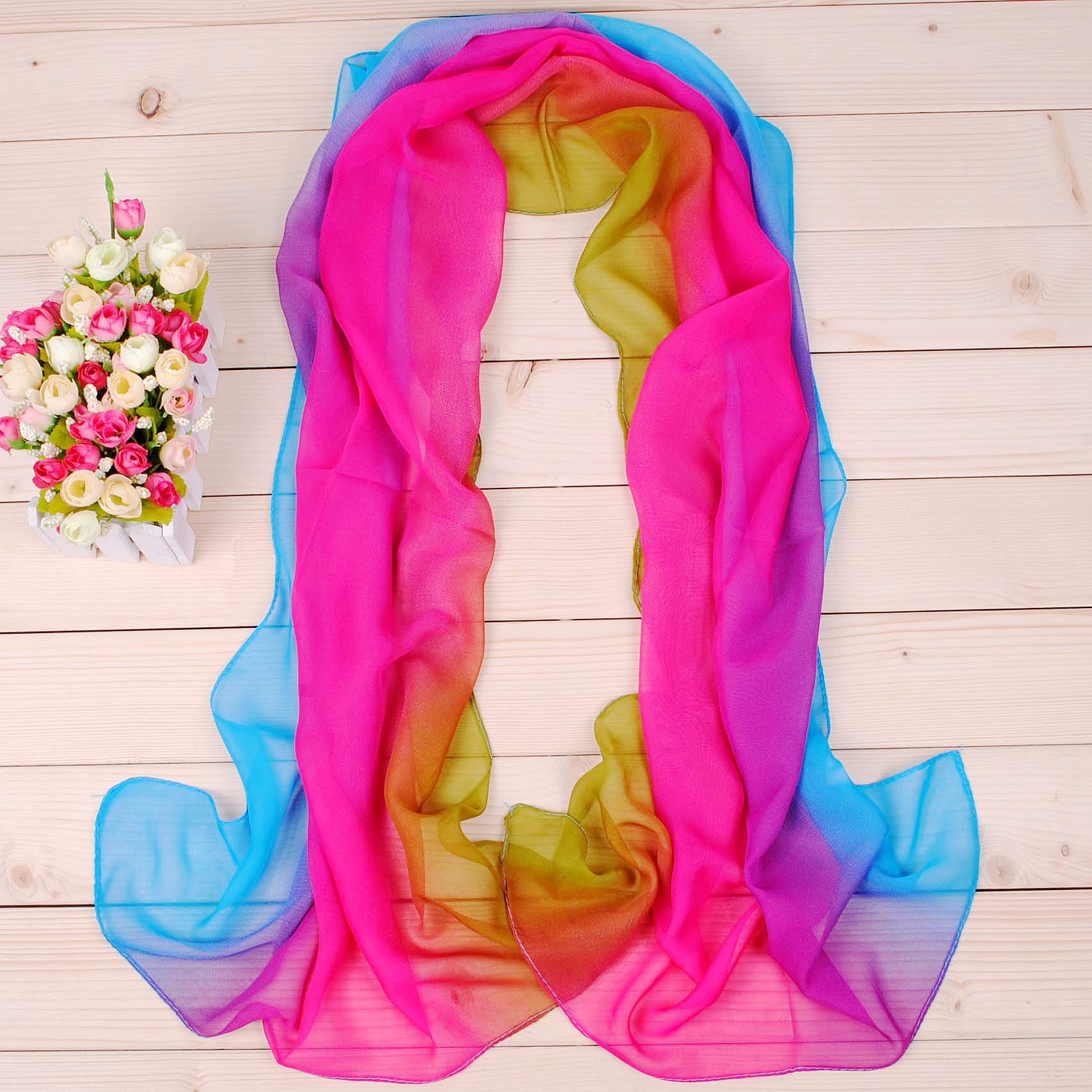 Details:160 50cm Rainbow Colour Print X080 Fashion Ladies Scarves Chiffon Scarf Womens Shawls