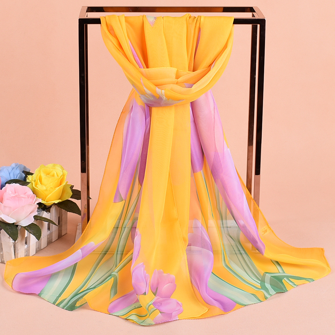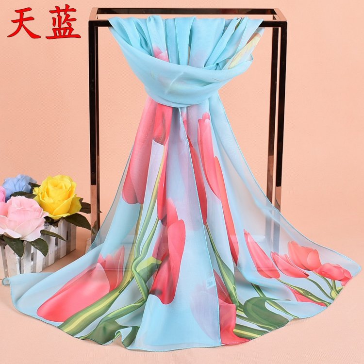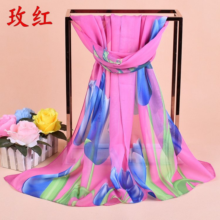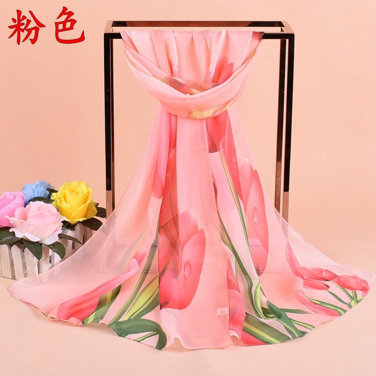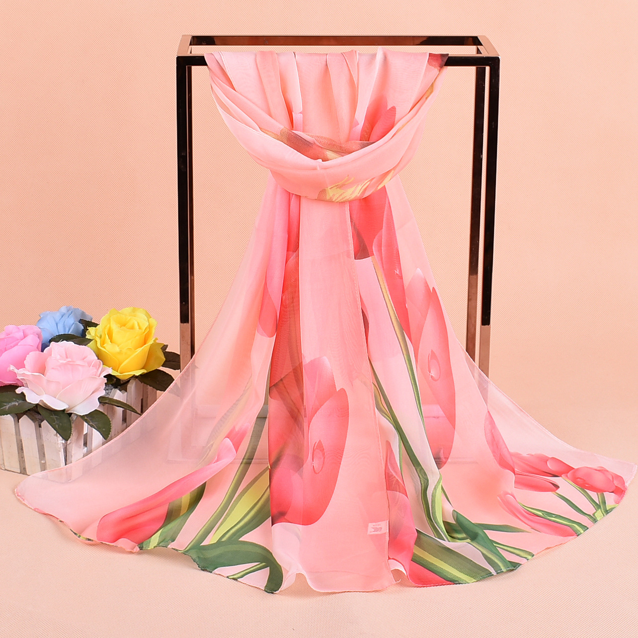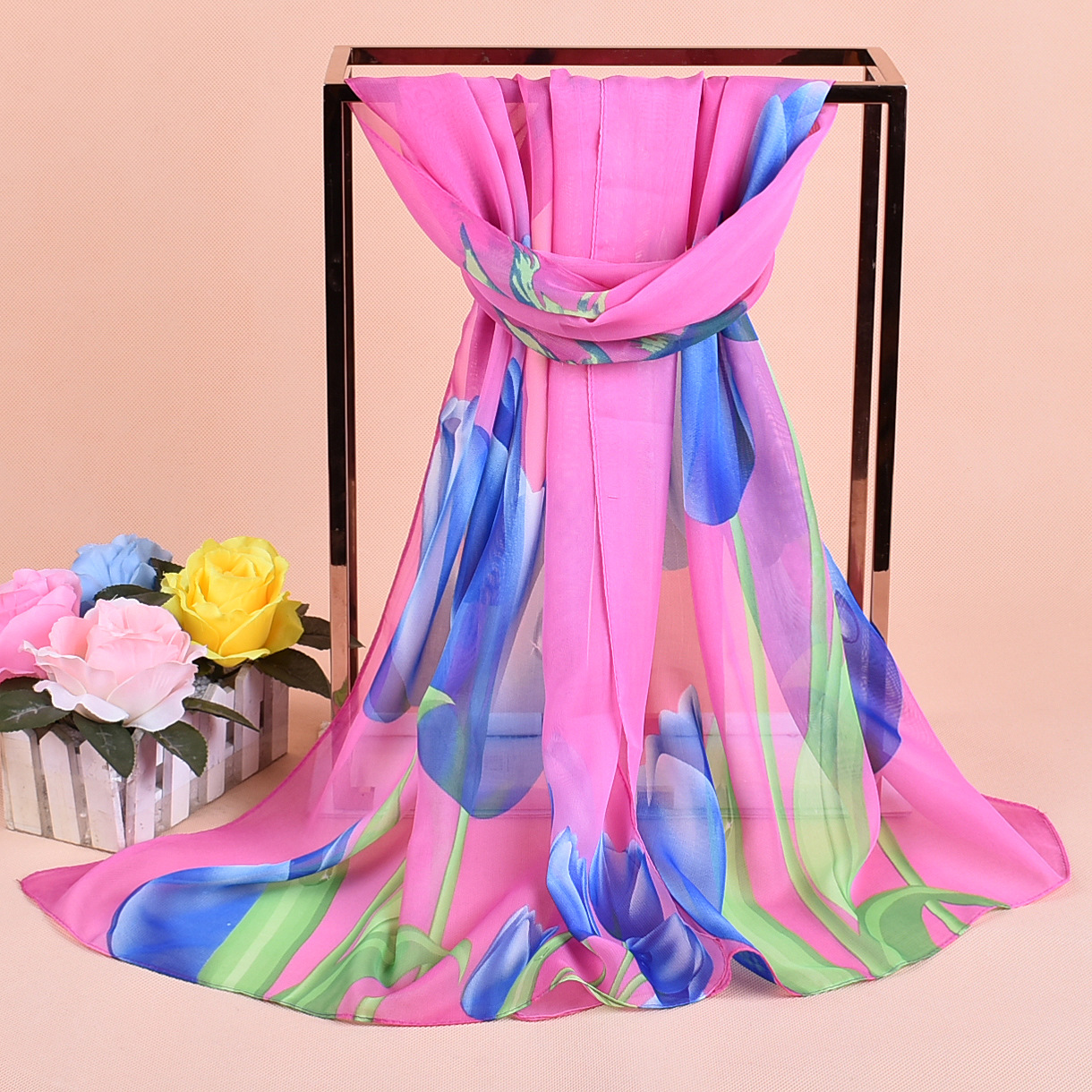 Details:160 50cm Tulip Flowers Print Floral X313 Fashion Ladies Scarves Chiffon Scarf Womens Shawls