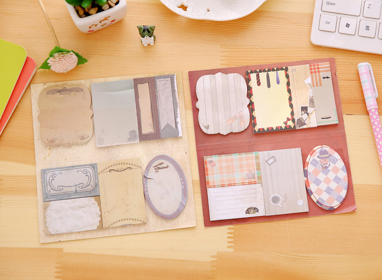 160 Sheets 8 Styles Cute Vintage Sticky Notes Pad Memo Index Tab Page Markers