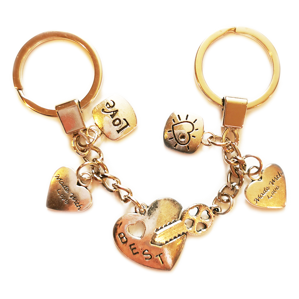Silver metal couple keyrings / puzzle key chains are novelty and unique gifts for best friends.