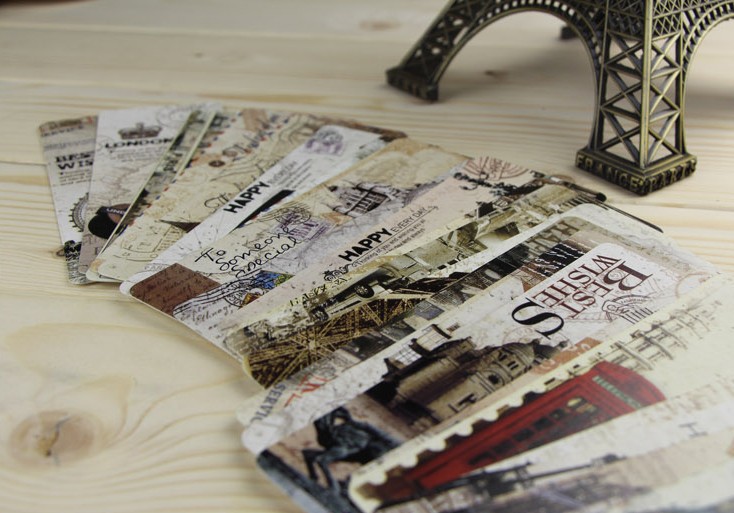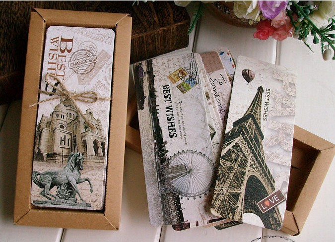 Details:30 Pc Cute Vintage Postcard Style London Paris Tourist Attractions Bookmarks Readers Gift