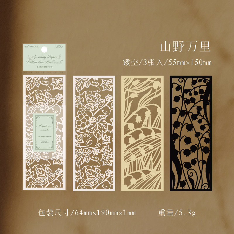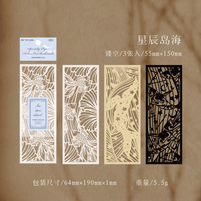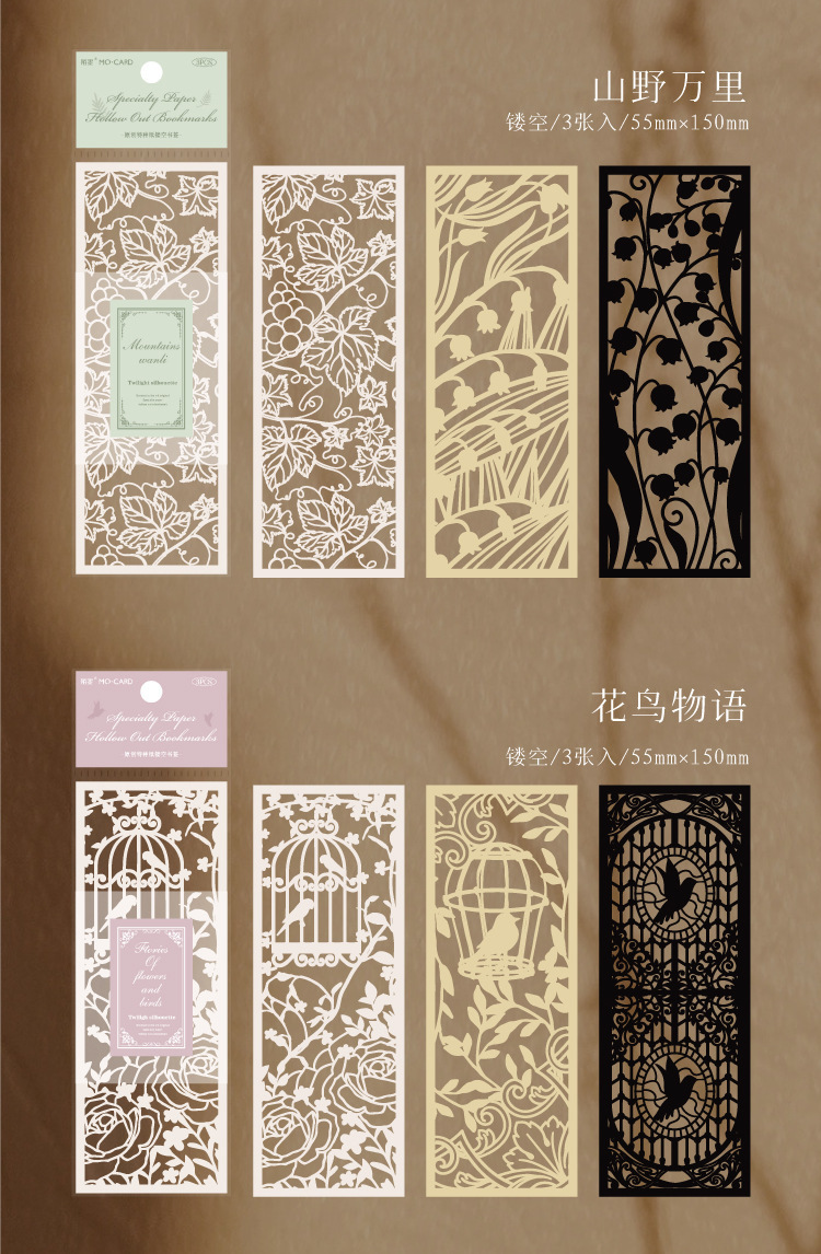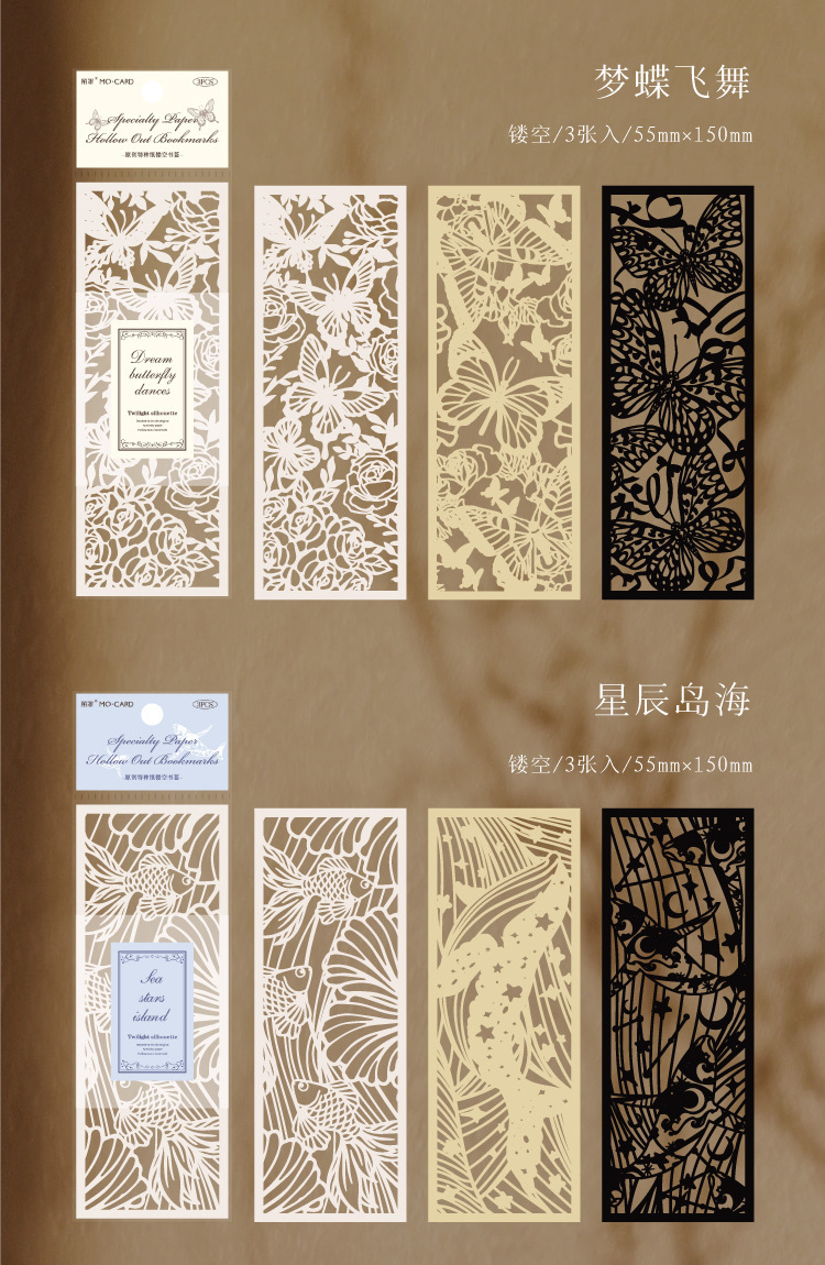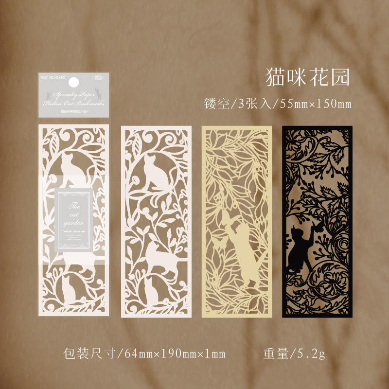 Beautiful and unique hollow-carved paper bookmarks with elegant designs of garden flowers, cat, fish, whale, butterflies, etc.