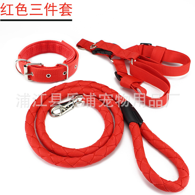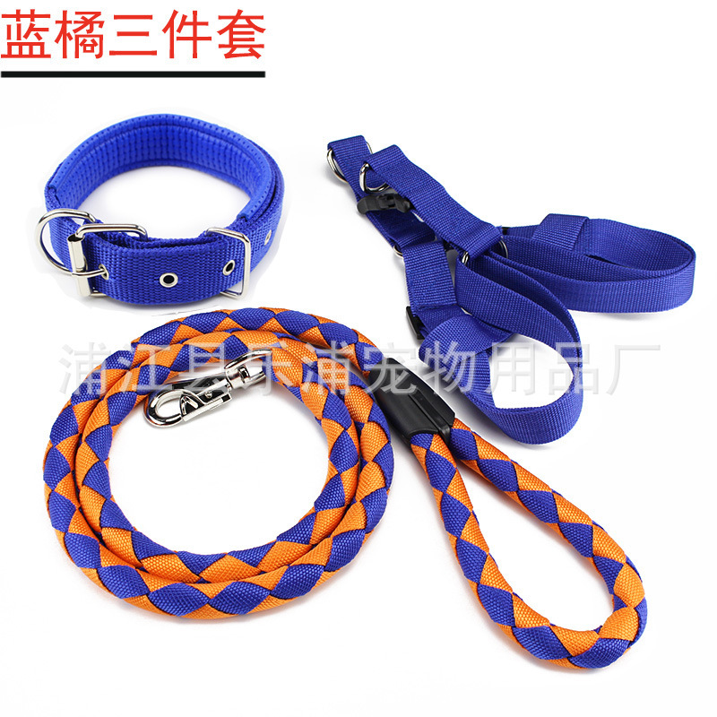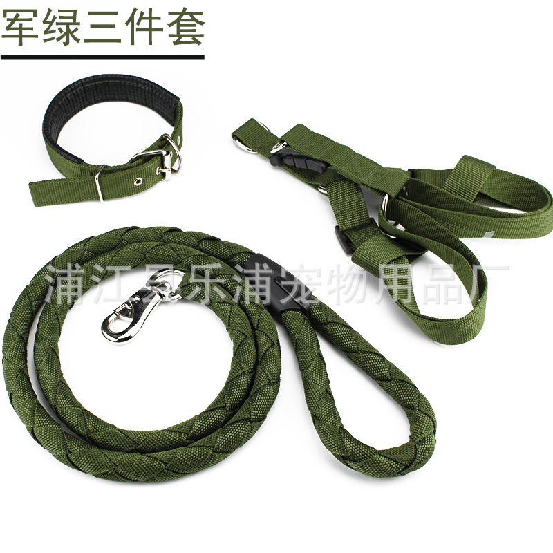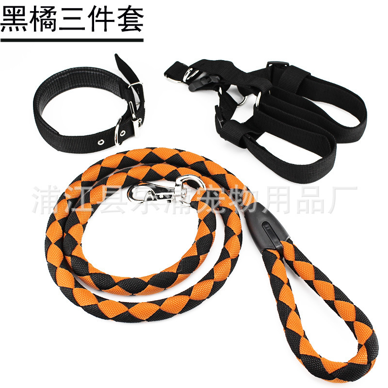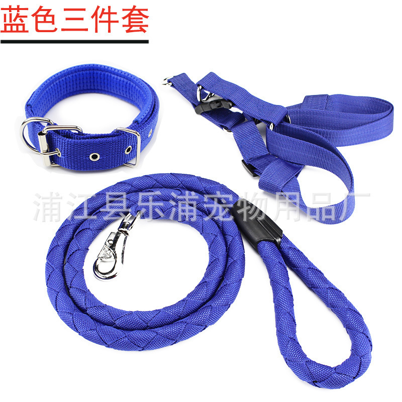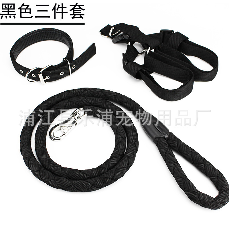 3pc Strong Nylon Rope Dog Lead Leash Collar Chest Back Harness Set S M L XL XXL