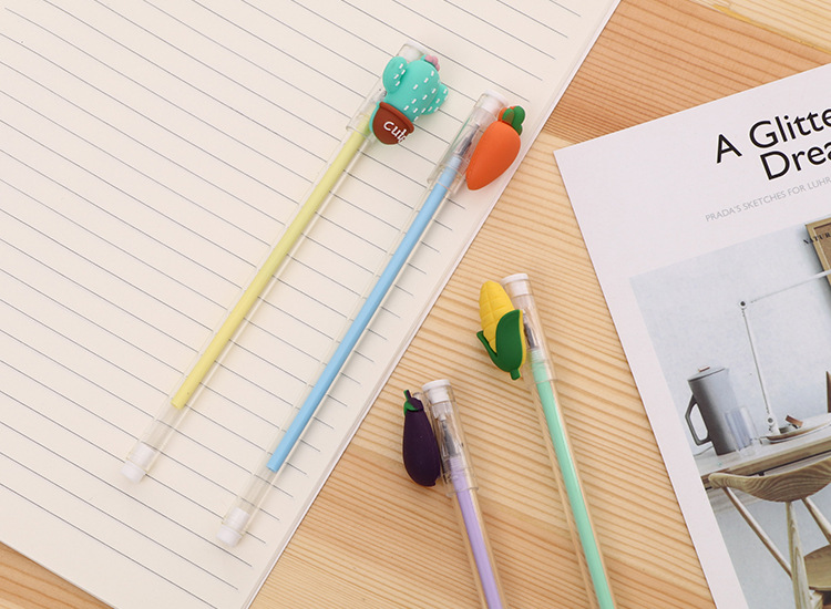 4pc Cute Vegetables Aubergine Sweetcorn Carrot Novelty Ballpoint Gel Pens Party Gift Bag Fillers