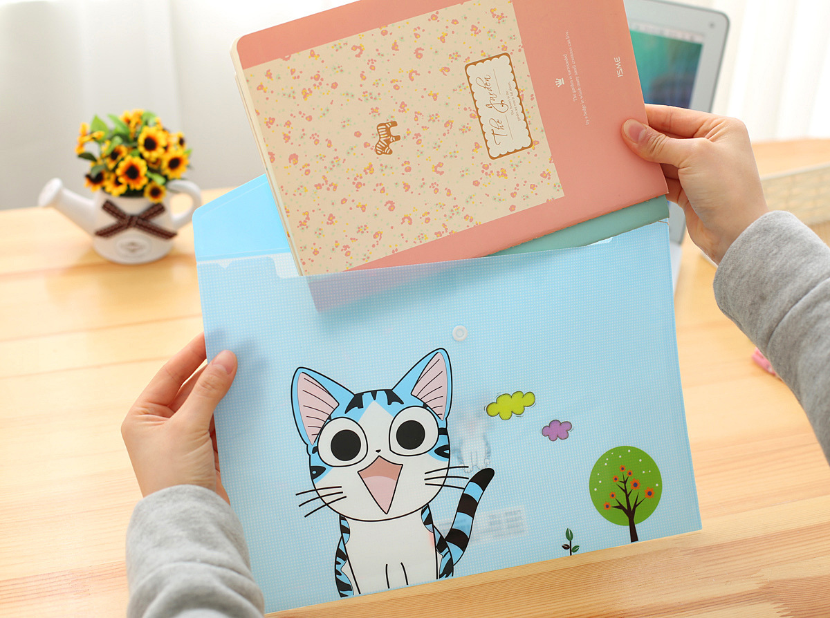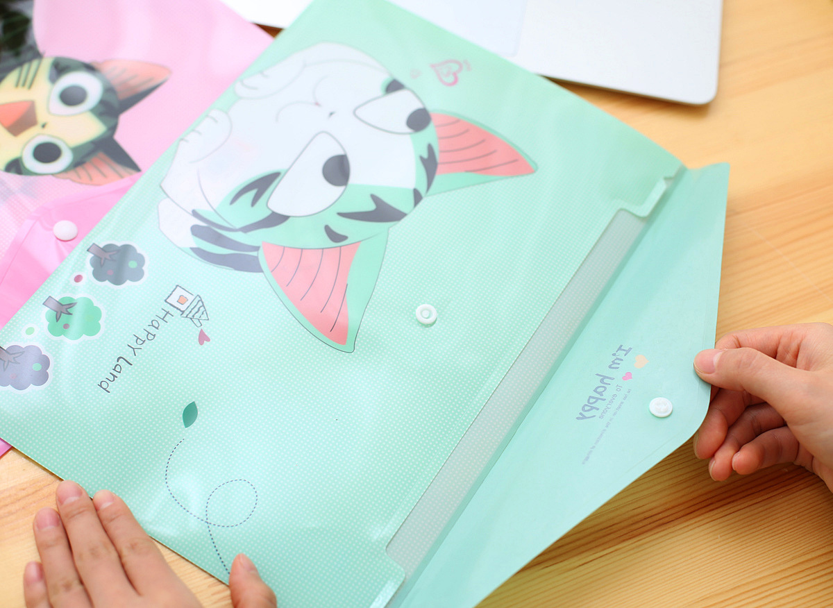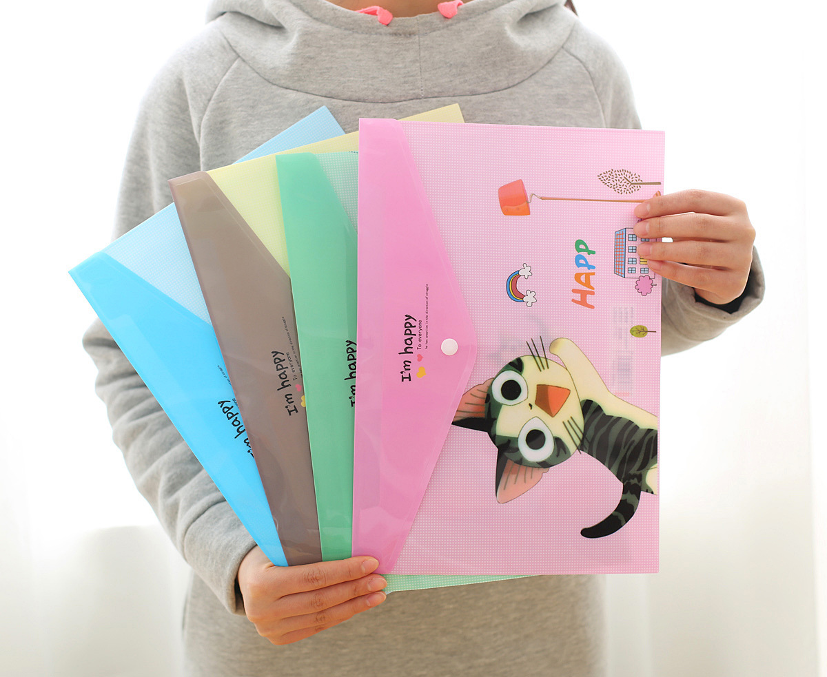 4pk Cute Kitten Cats Fashion A4 Plastic Document Wallets File Folders