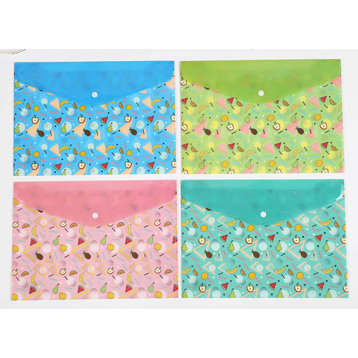 4pk Summer Fruits Fashion A4 Plastic Document Wallets File Folders
