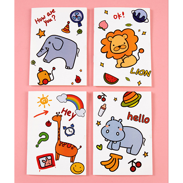 Details:4pk Zoo Animals Lion Elephant Giraffe Hippo Cute Mini Notebooks Small Memo Pads