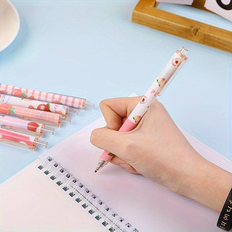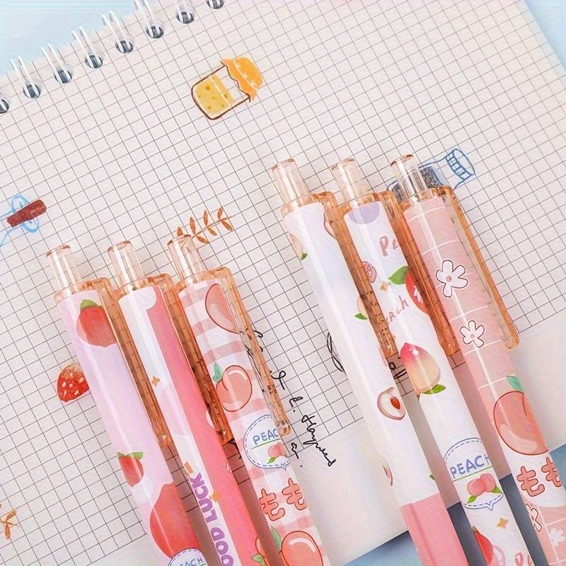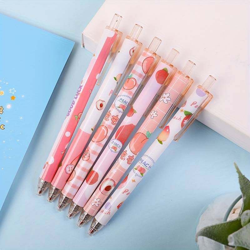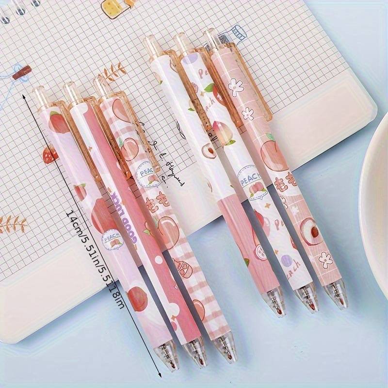 Details:6pc Pink Fruits Peach Press Ballpoint Gel Pens Cute Kids Party Gift Bag Fillers