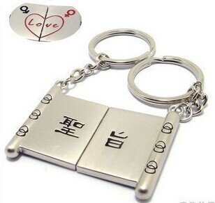 Details:Antique Book Love You Silver Metal Couple Keyrings Lovers Puzzle Key Chains Set