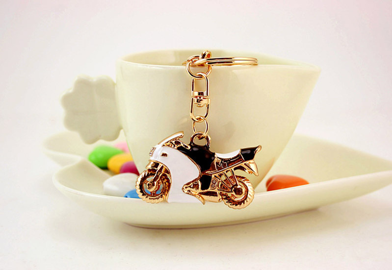Black White Motorbike Motorcycle Diamante Bag Charm Handbag Keyring Pendant