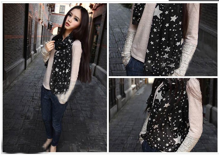 Black White Stars Fashion Ladies Scarves Chiffon Scarf Womens Shawls