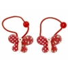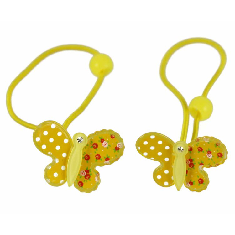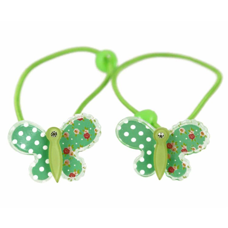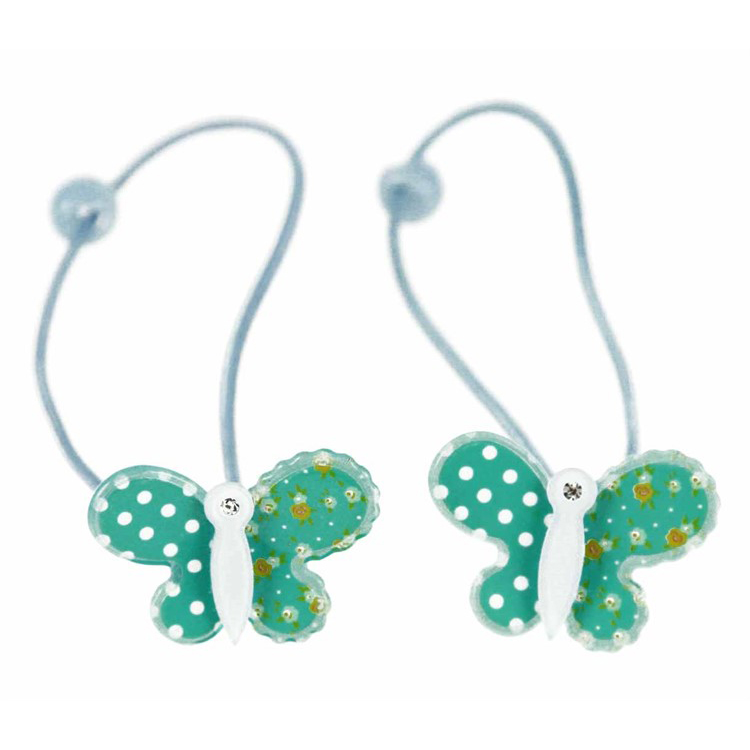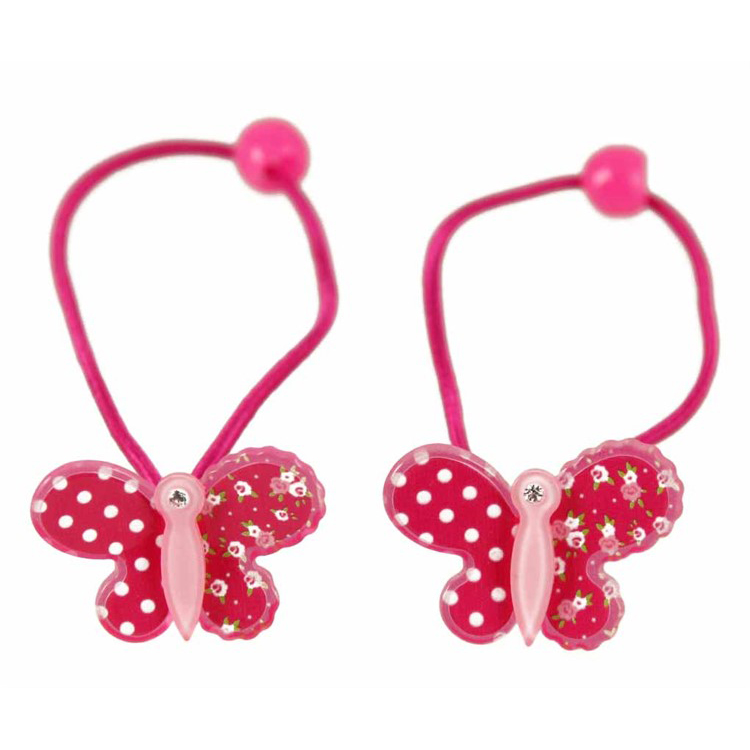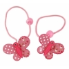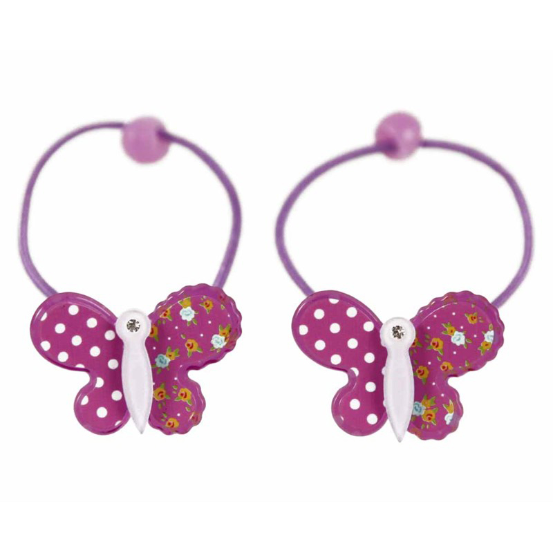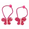 Hair elastics with a polka-dot and floral print butterfly decorated with genuine Clear crystal stone.