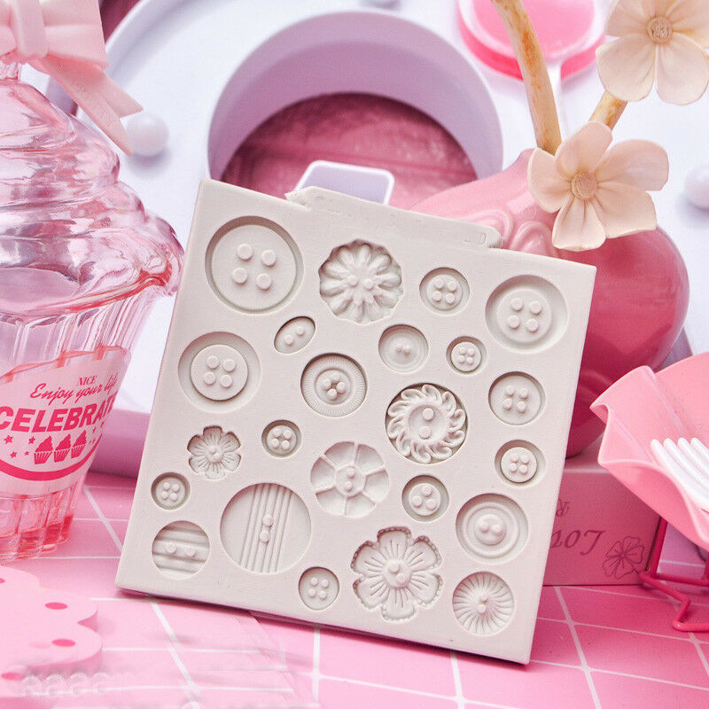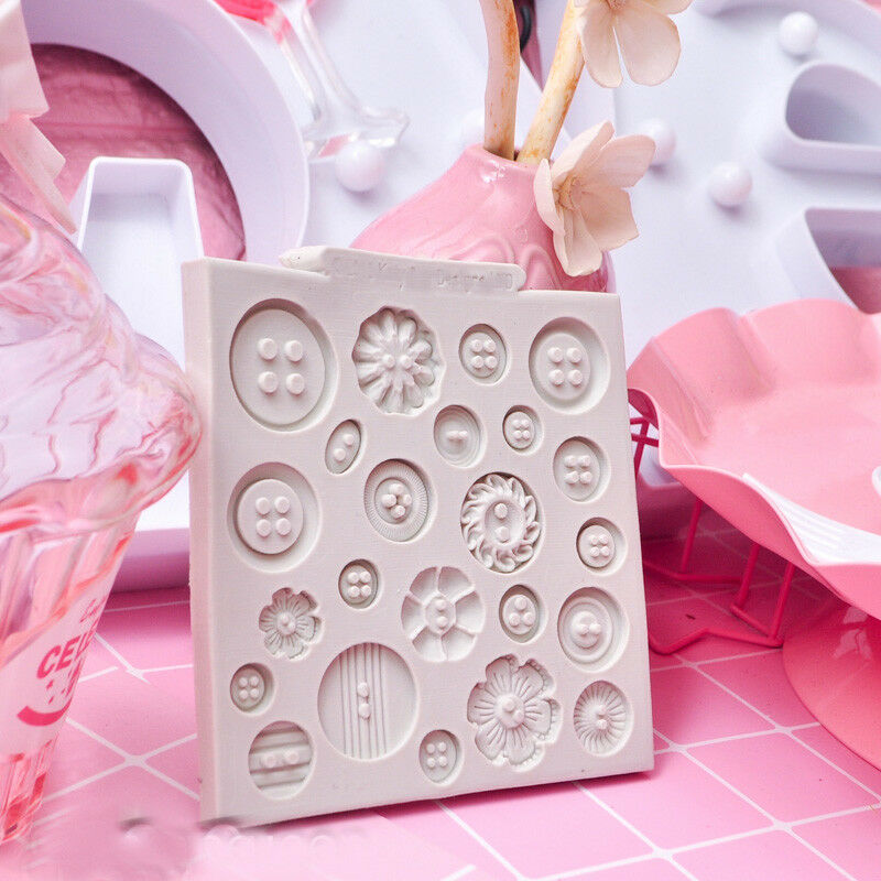 Buttons Flowers Silicone Fondant Chocolate Mould Cake Icing Sugar Paste Mold