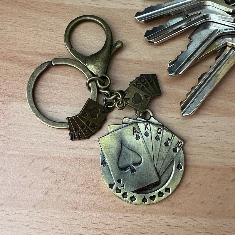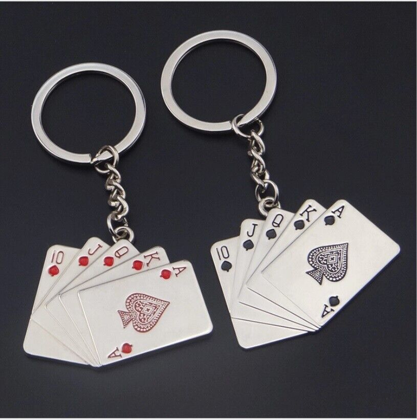 Casino Poker Playing Cards Silver Metal Keyring Key Chain Novelty Gift Present