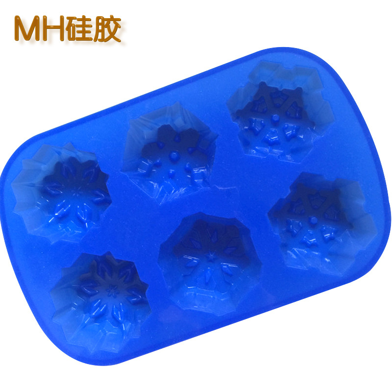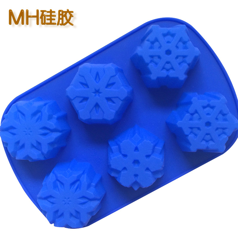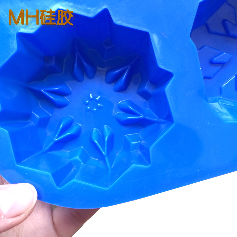 Snowflakes (Blue): 6 x cavity. the mould measures approximately 28cm x 18cm, and each snowflake cavity is about 7cm in diameter and 3.5cm in depth.