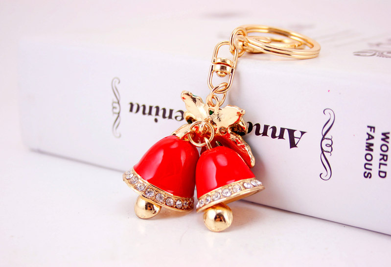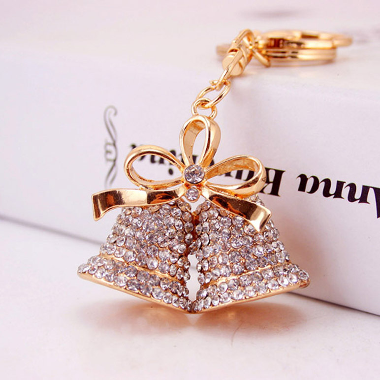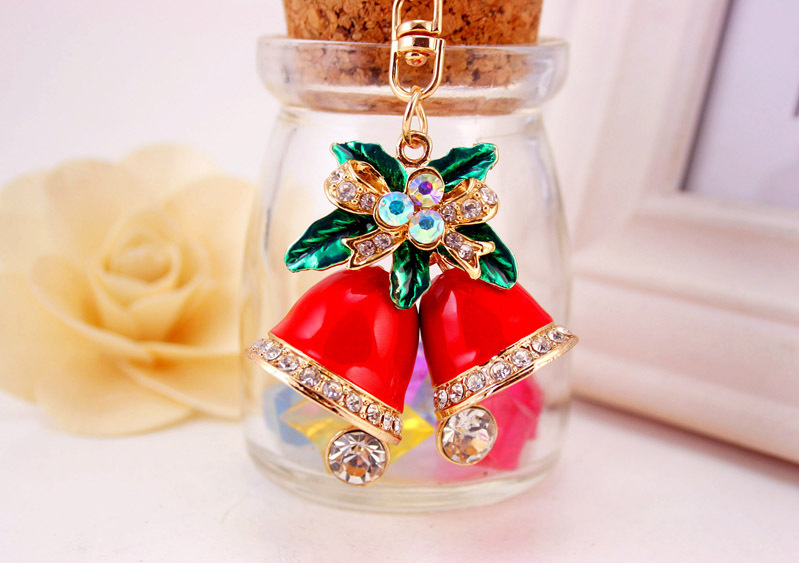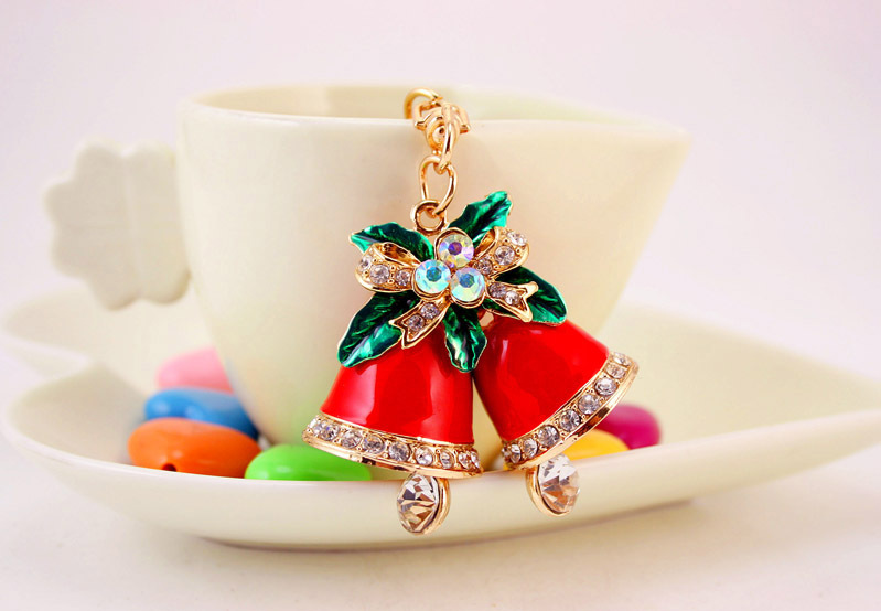 Details:Christmas Jingle Bells Crystal Diamante Bag Charms Handbag Keyrings Pendant