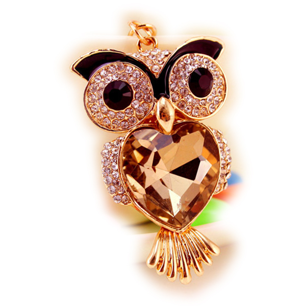 Coffee Gemstone Owl Sparkling Crystal Diamante Rhinestone Bag Charm Handbag Pendant Keyring Chain