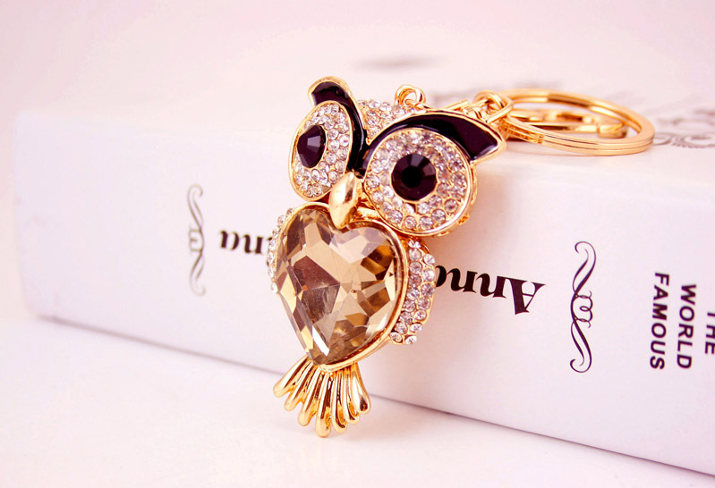 Sparkling crystal diamante rhinestone owl with coffee gemstone bag charm handbag pendant with keyring key chain