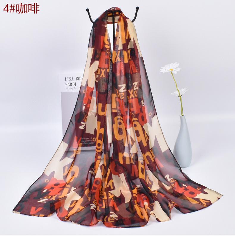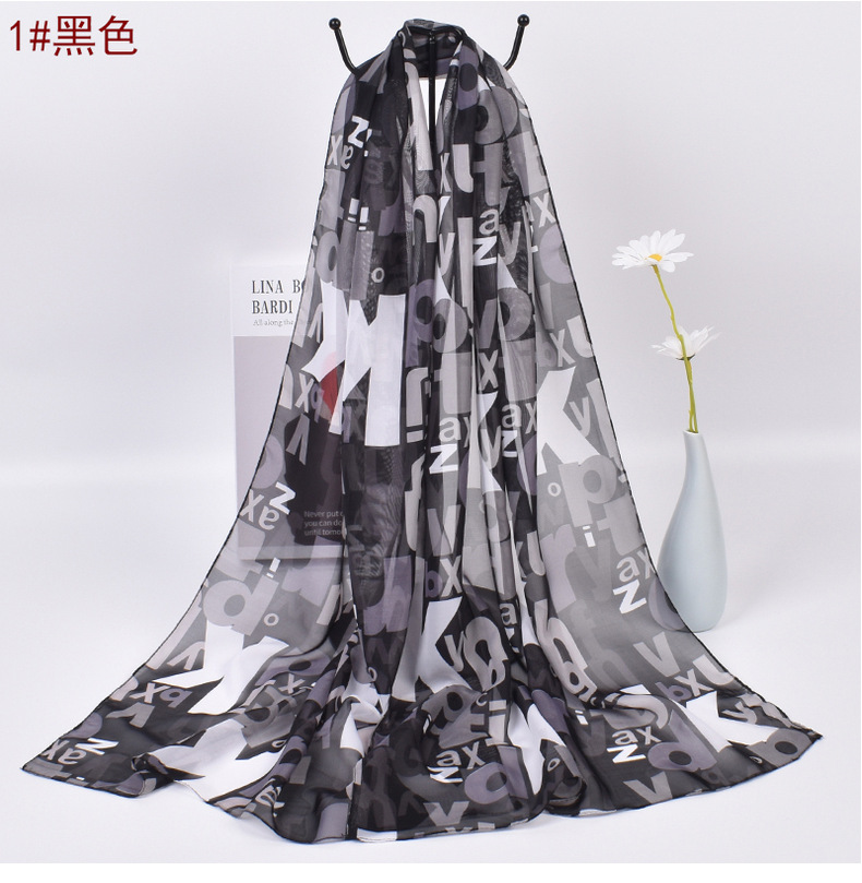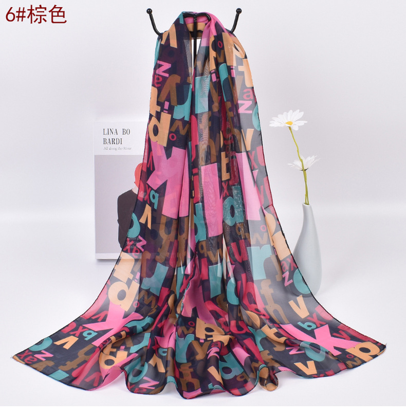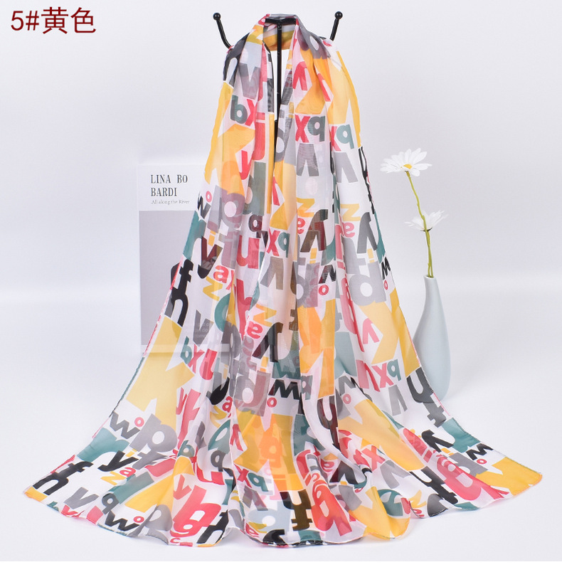 Colorful Alphabet Letters Patterned Fashion Ladies Chiffon Scarf Shawls X523
