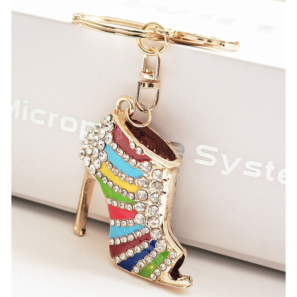 Colorful High Heel Shoe Crystal Diamante Bag Charms Handbag Keyrings Pendant