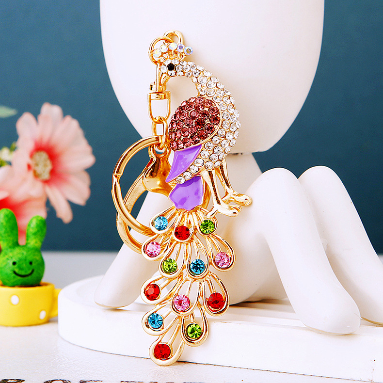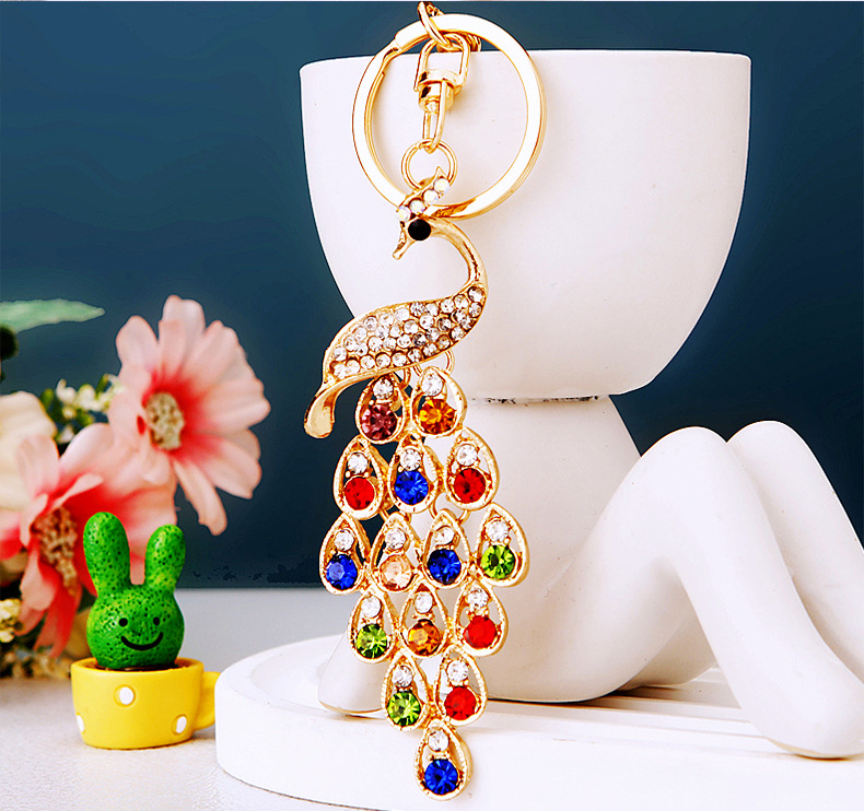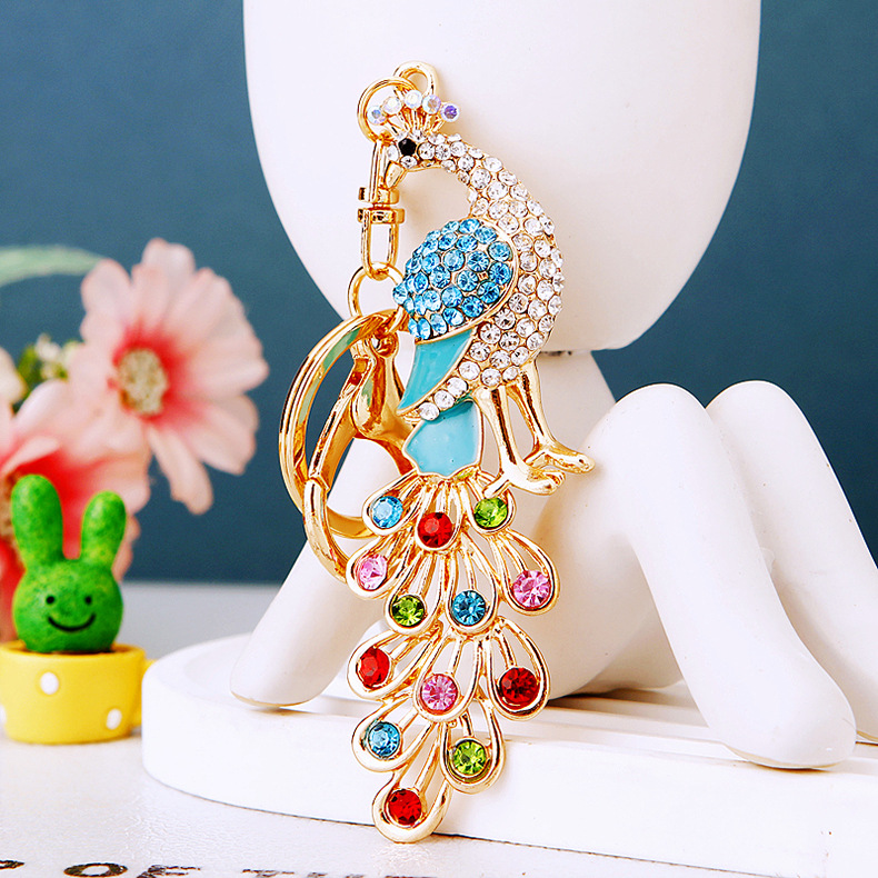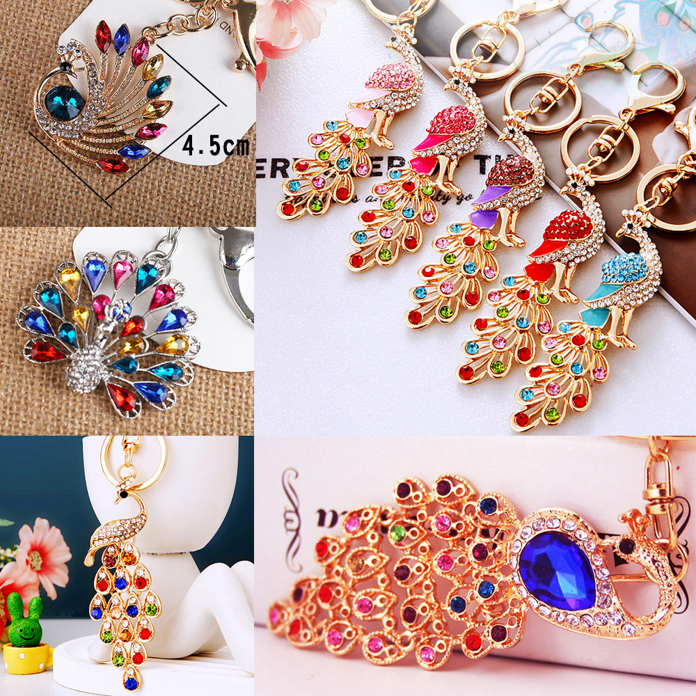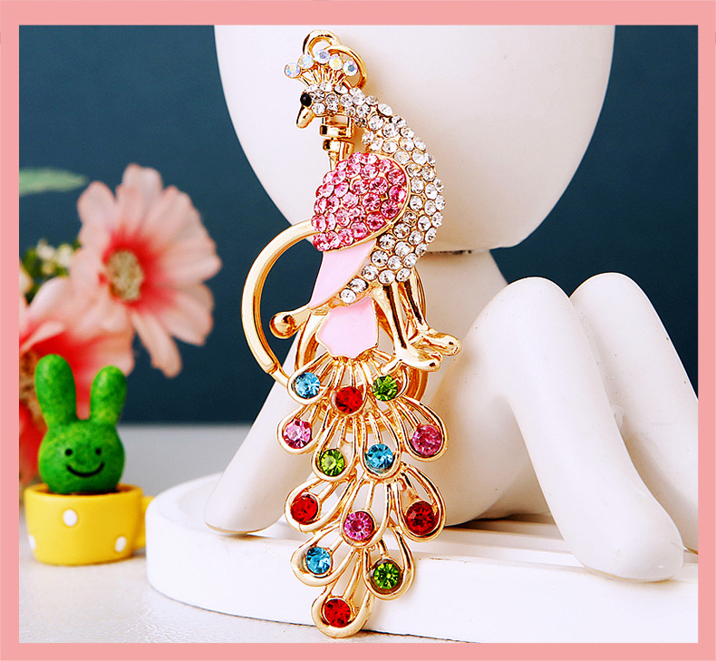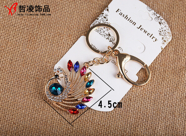 Details:Colourful Peacock Animals Crystal Diamante Bag Charms Handbag Keyrings Pendant