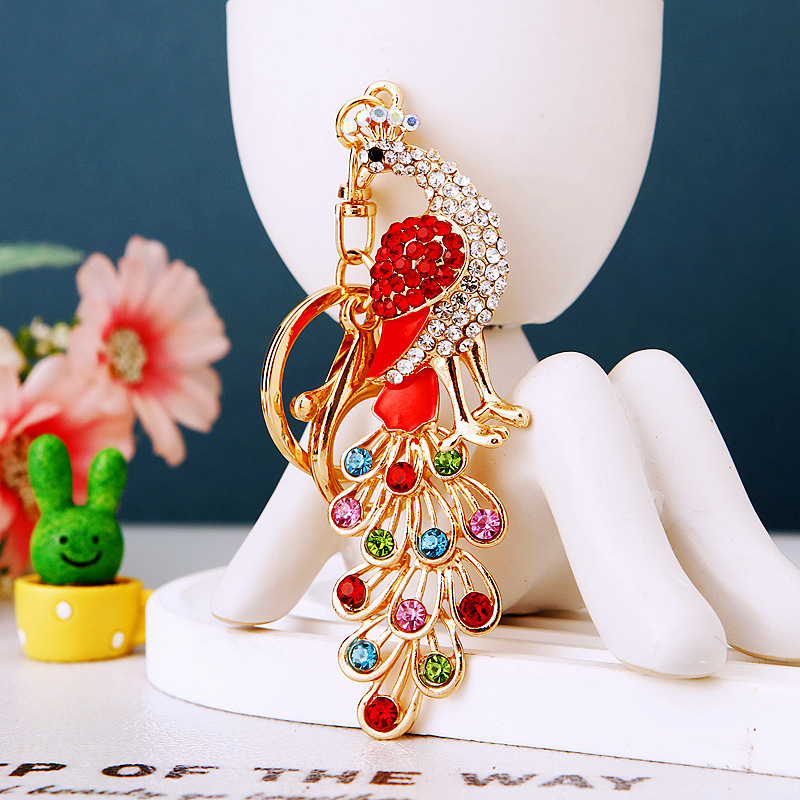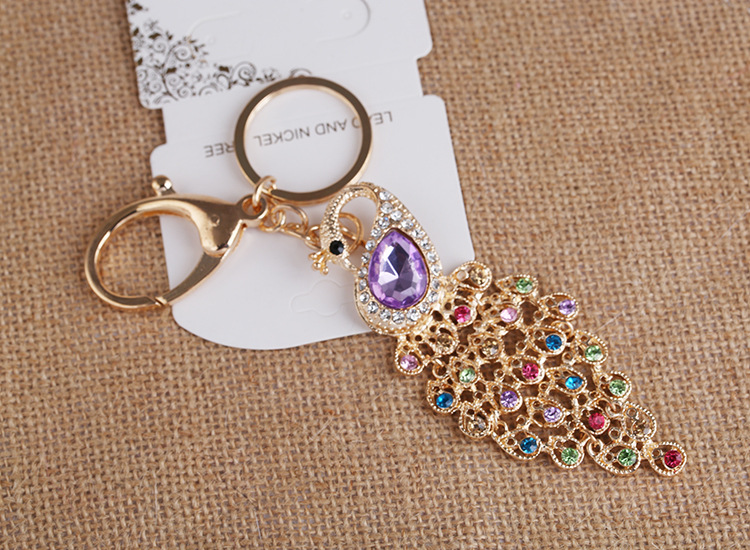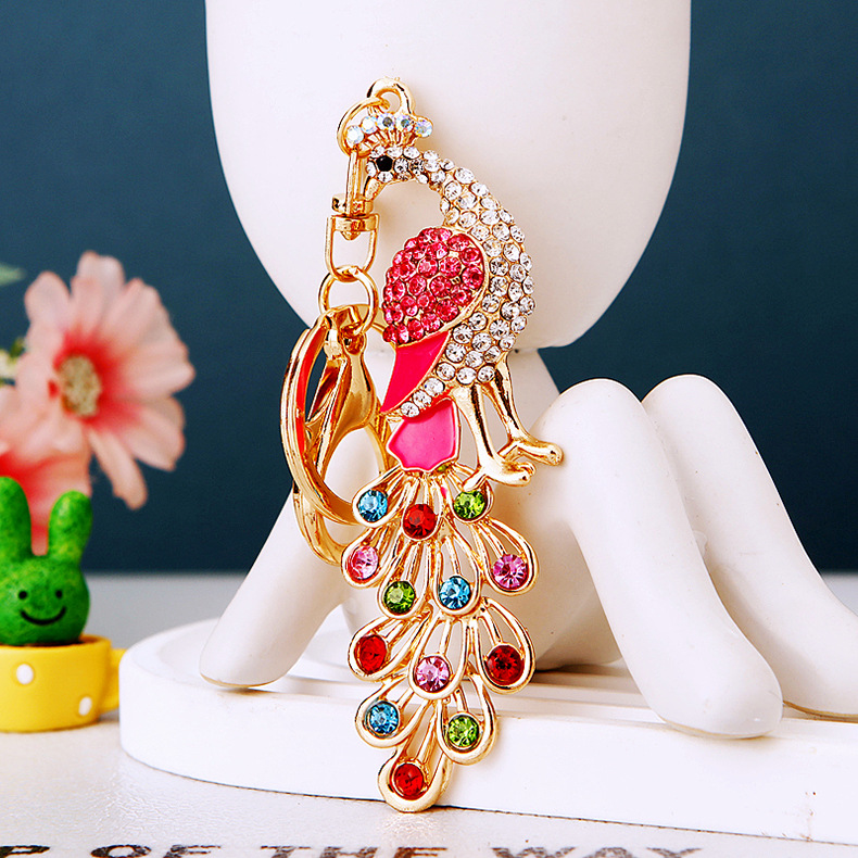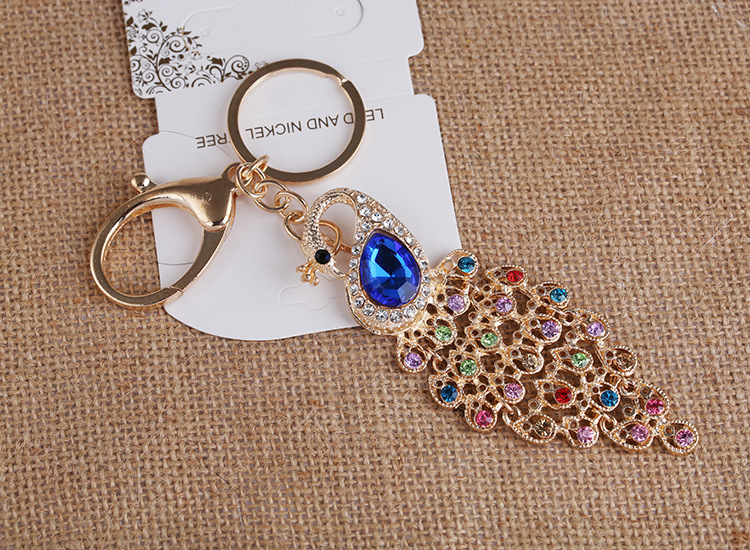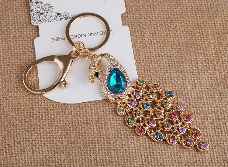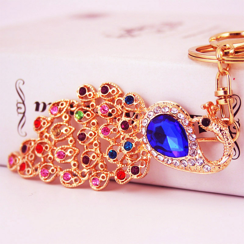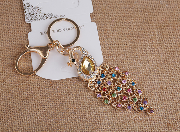 Details:Colourful Peacock Animals Crystal Diamante Bag Charms Handbag Keyrings Pendant