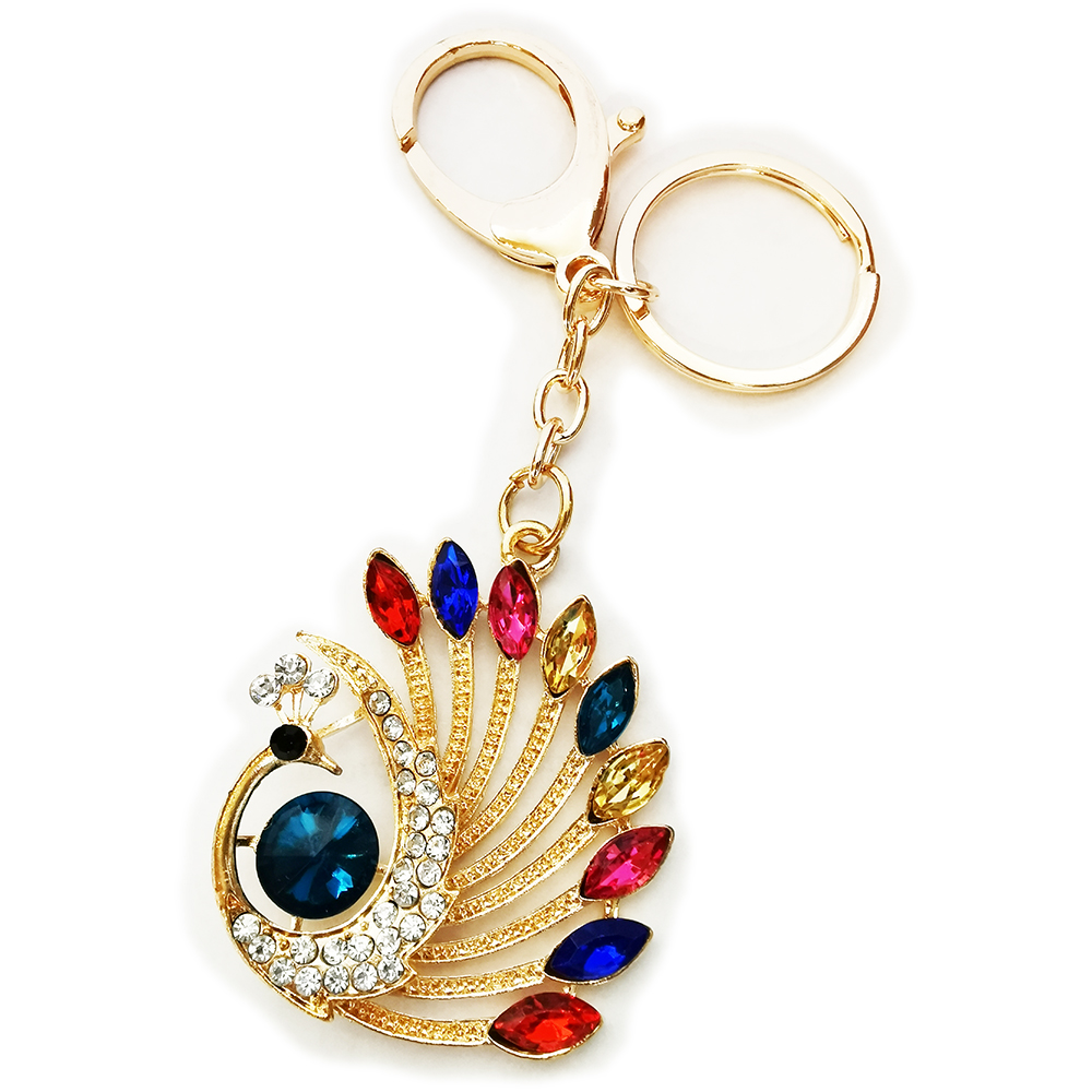 Colourful Peacock Animals Crystal Diamante Bag Charms Handbag Keyrings Pendant
