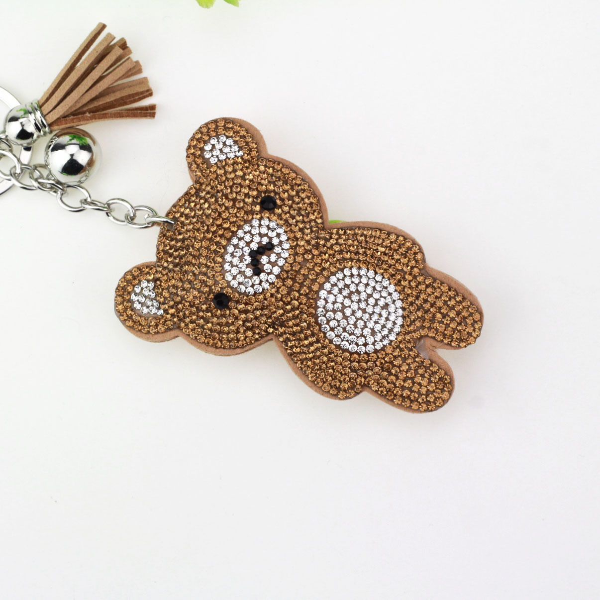 Cute Animal Bears Leather Crystal Diamante Bag Charms Handbag Keyrings Pendant