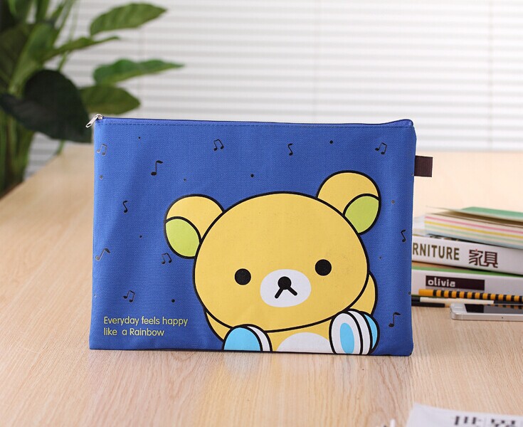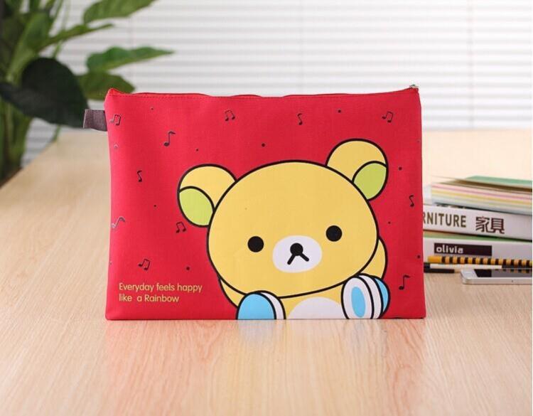 Cute Bear Animals Canvas Fashion A4 Plastic Document Wallets File Folders