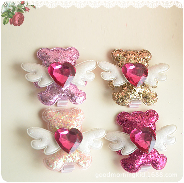 Cute Bling Bling Glitter Angel Bear Hair Clip