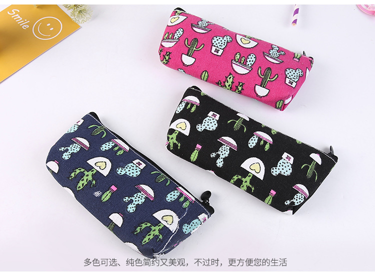 Cute Cactus Plants Canvas Pencil Cases Cosmetics Make Up Bags Pen Pouches