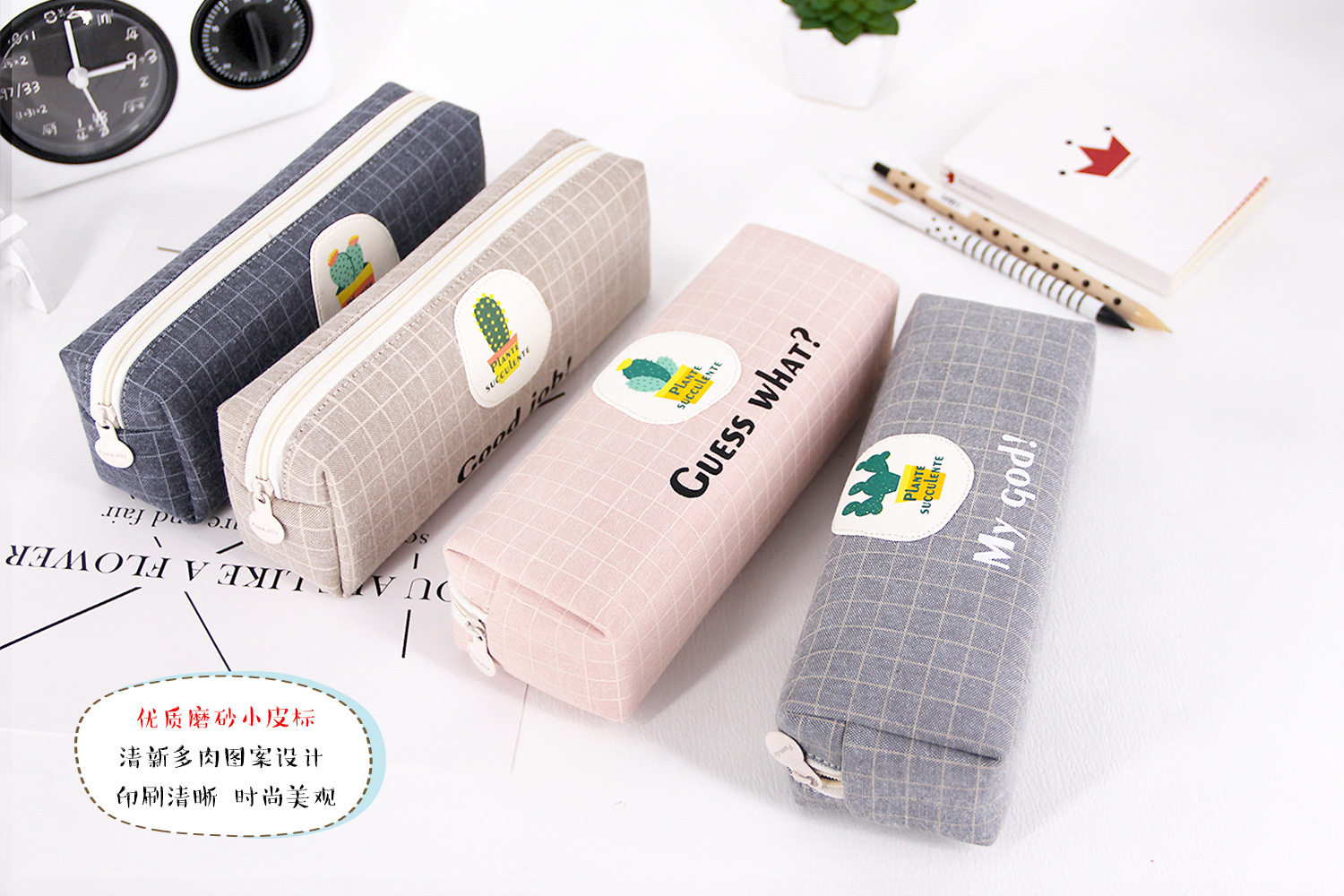 Cute Cactus Plants Fabric Pencil Cases Cosmetics Make Up Bags Pen Pouches