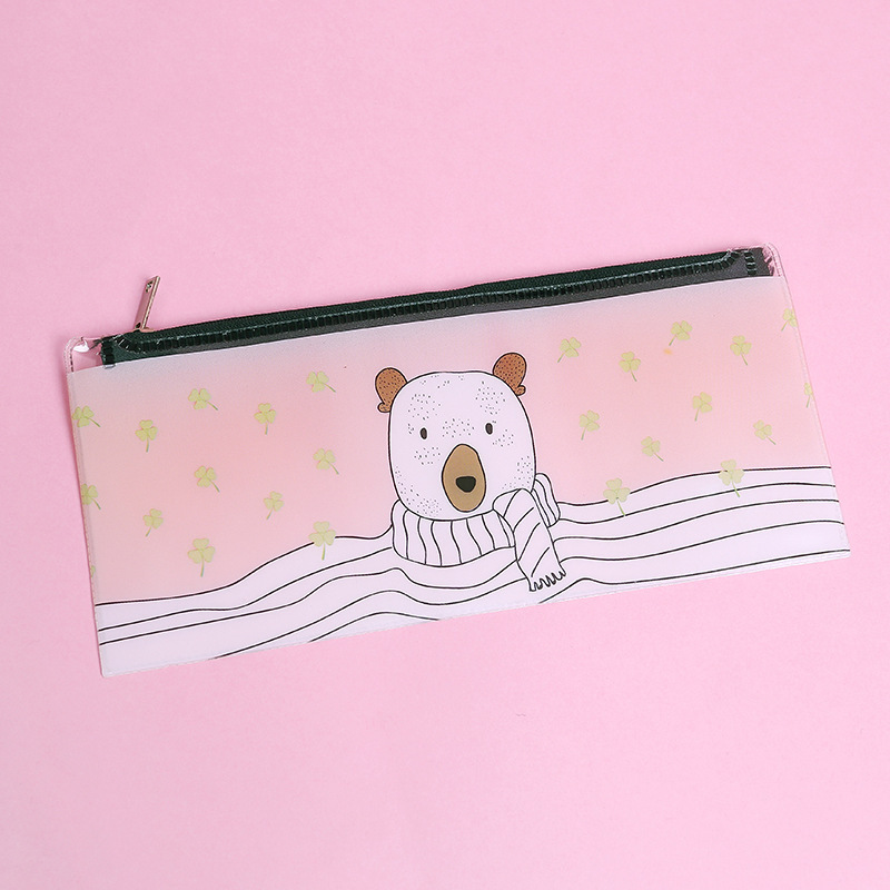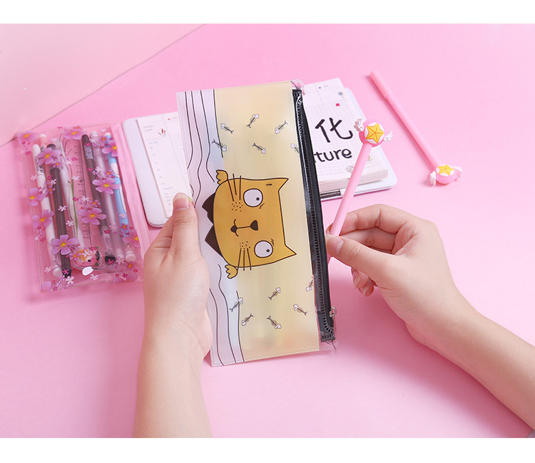 Cute Dog Cat Bear Animals Flowers Plastic Pencil Cases Floral Cosmetics Make Up Bags Pen Pouches