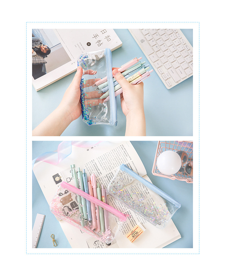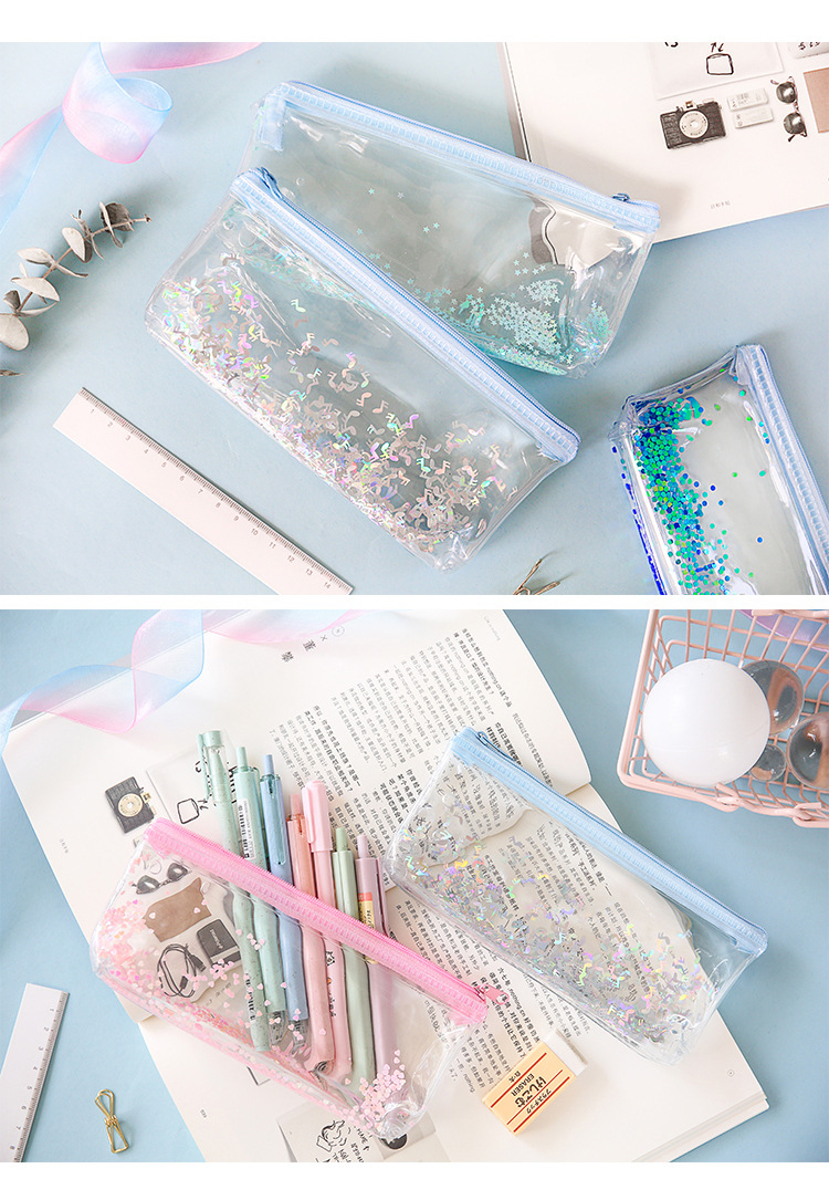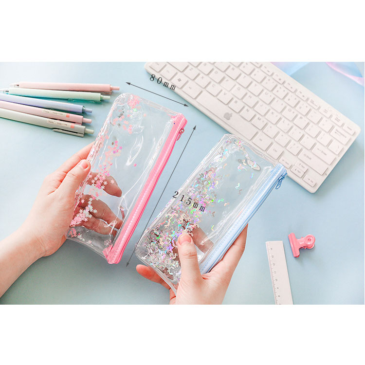 Cute Floating Stars Clear Pencil Case Transparent Cosmetic Case Makeup Bag