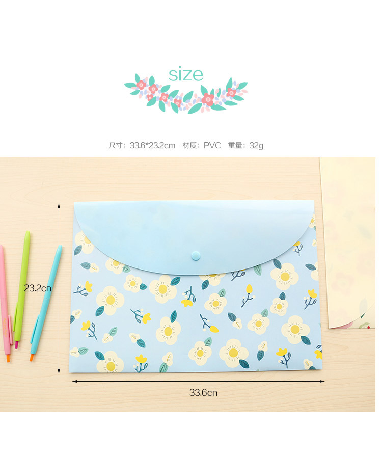 Cute Flowers Floral Fashion A4 Plastic Document Wallets File Folders Filing Paper Storage