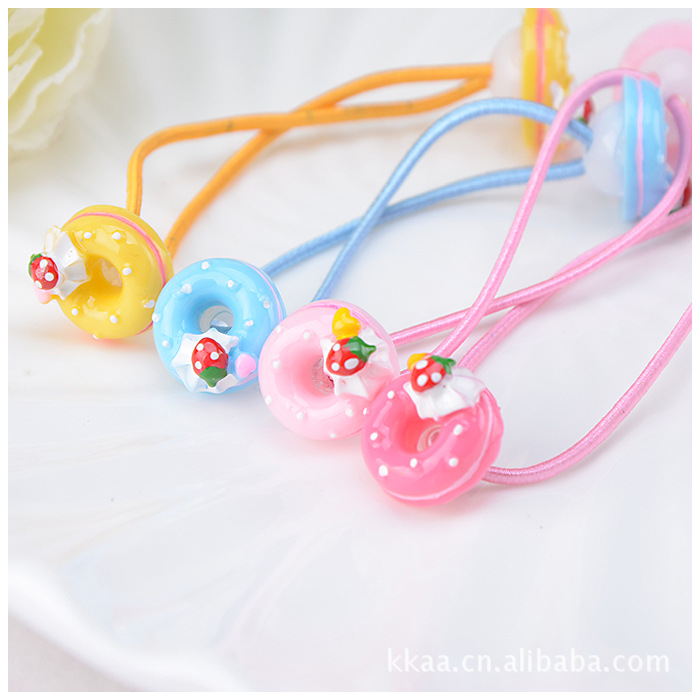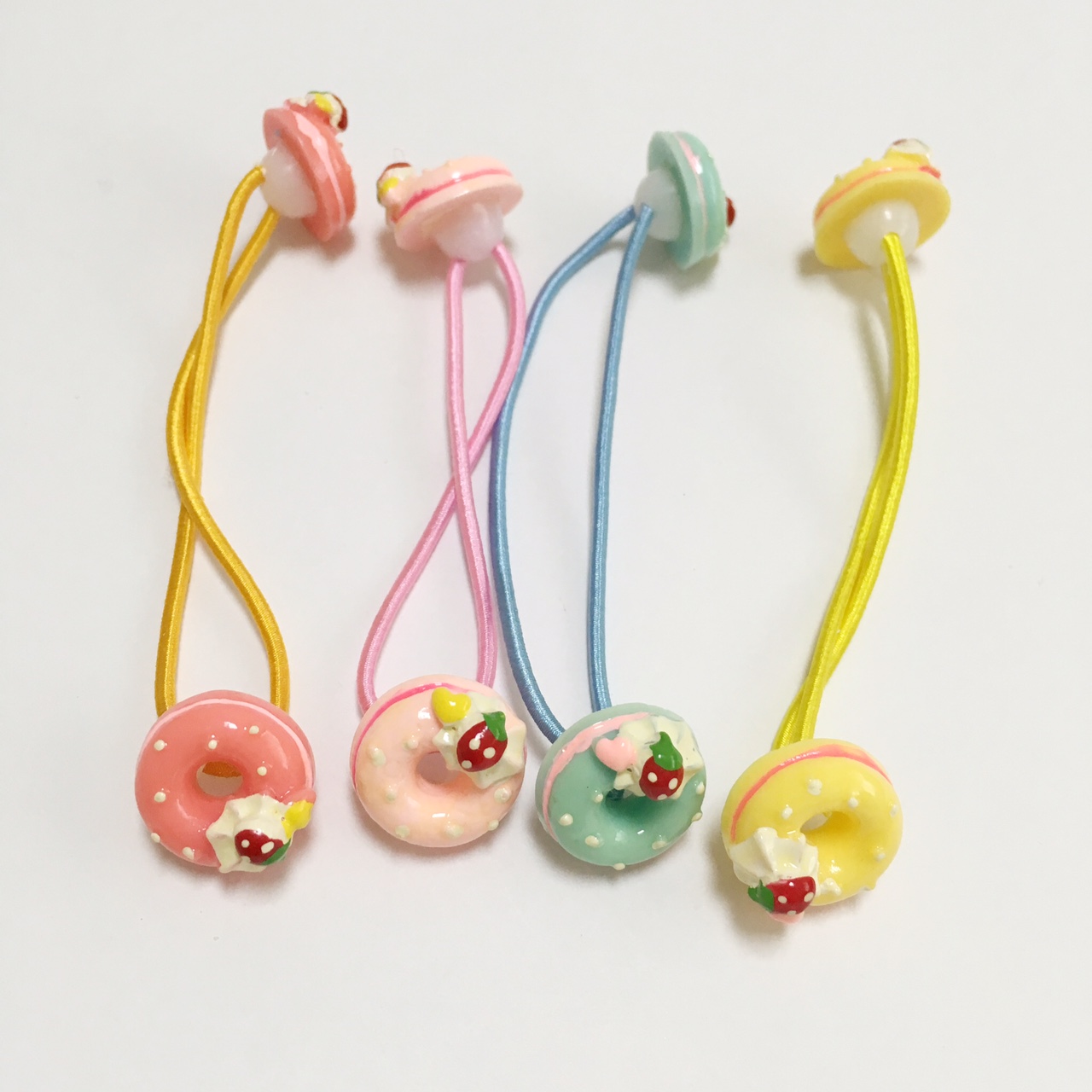 Hair elastics with mini doughnut cake.