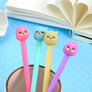Very cute owls ballpoint gel pens in blue, yellow, pink and purple.