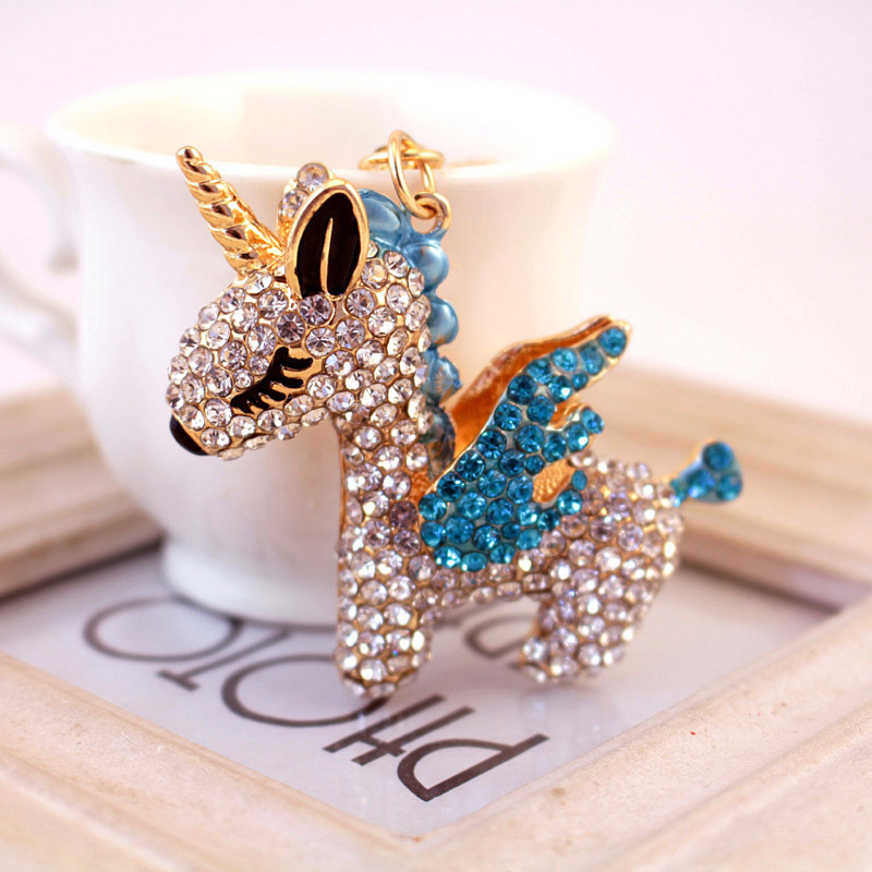 Cute Unicorn Crystal Diamante Bag Charms Handbag Women Keyrings Pendant