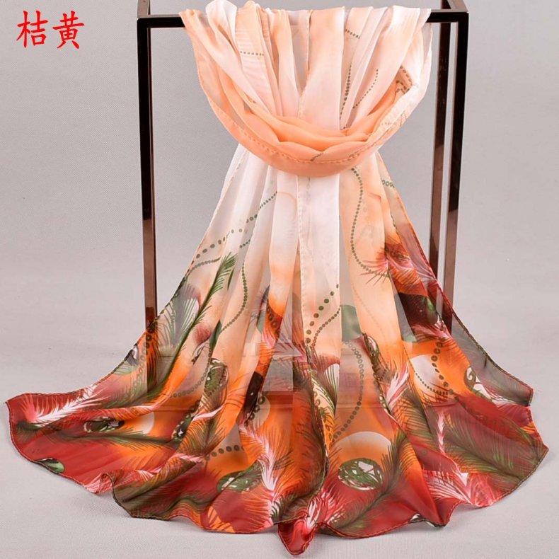 Name: Peacock Feathers Patterned Chiffon Scarf X426