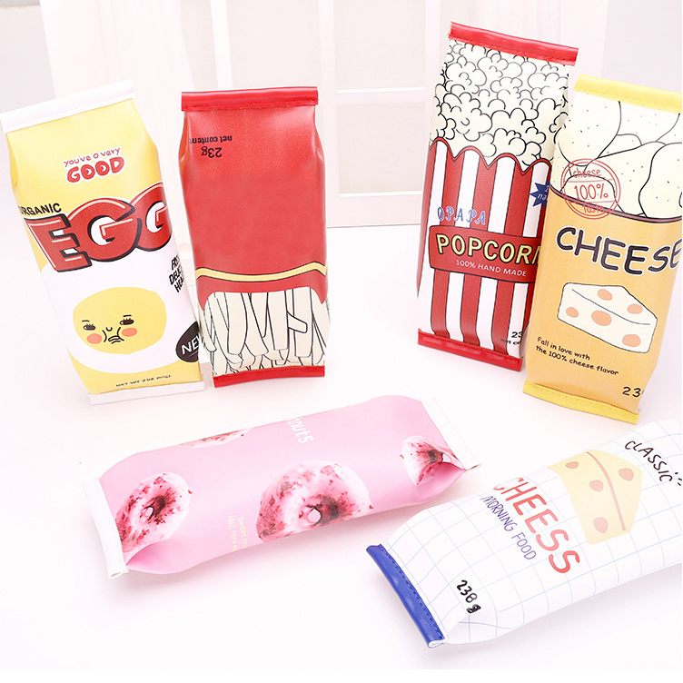 Fast Food Chips Cookie Popcorn Doughnuts Leather Pencil Case Cosmetic Makeup Bag