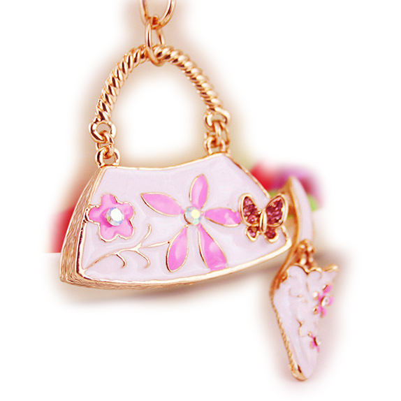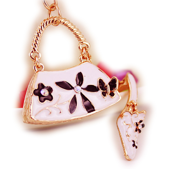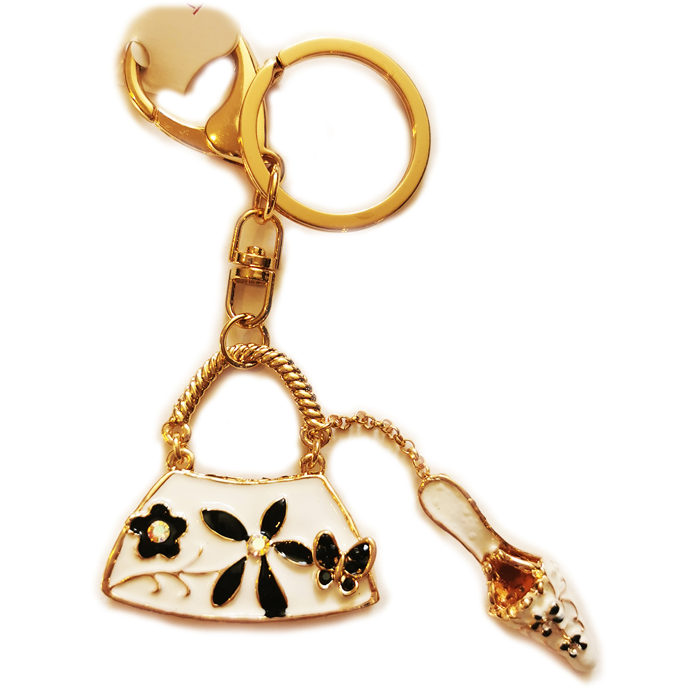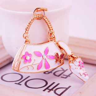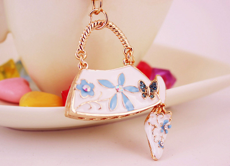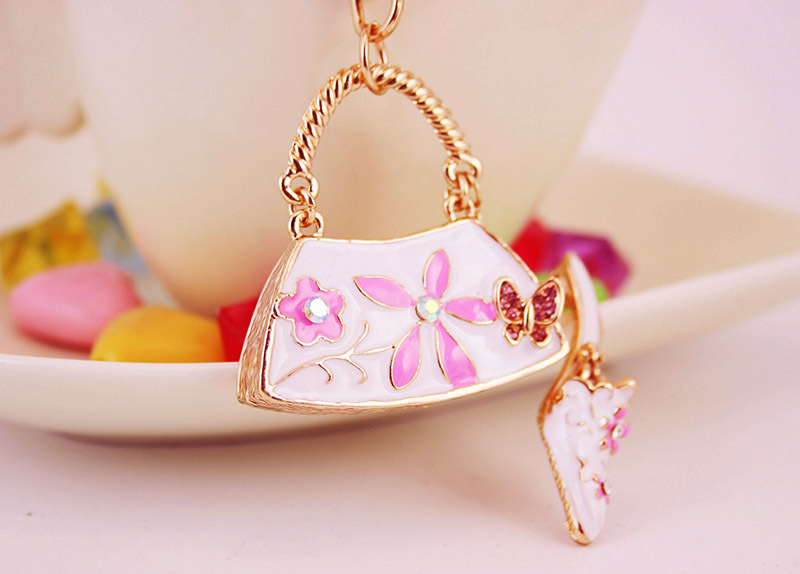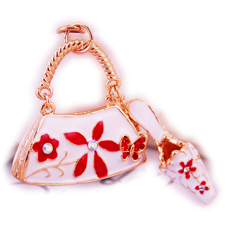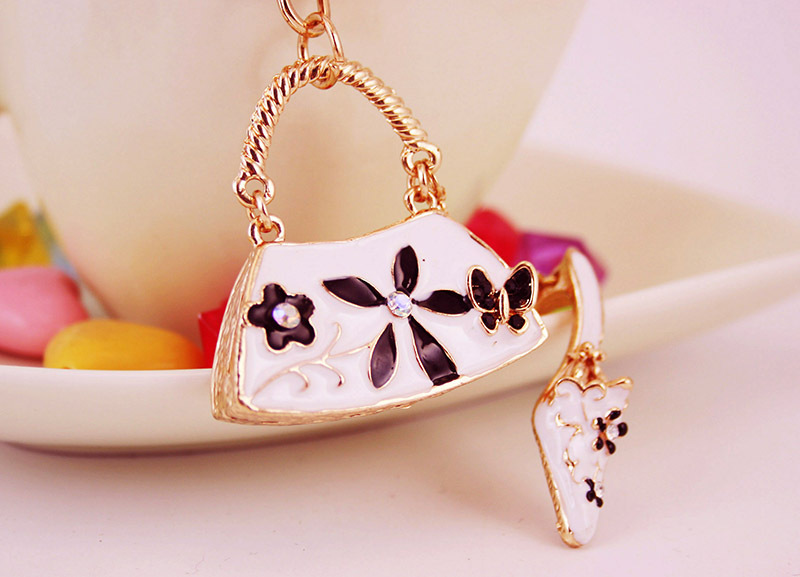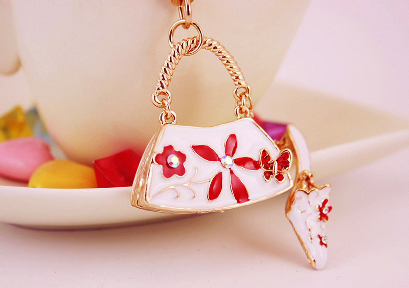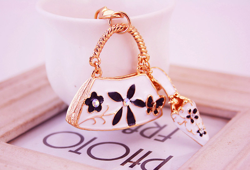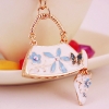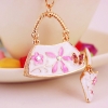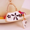 Floral White Handbag Shoe Crystal Diamante Bag Charms Handbag Keyrings Pendant