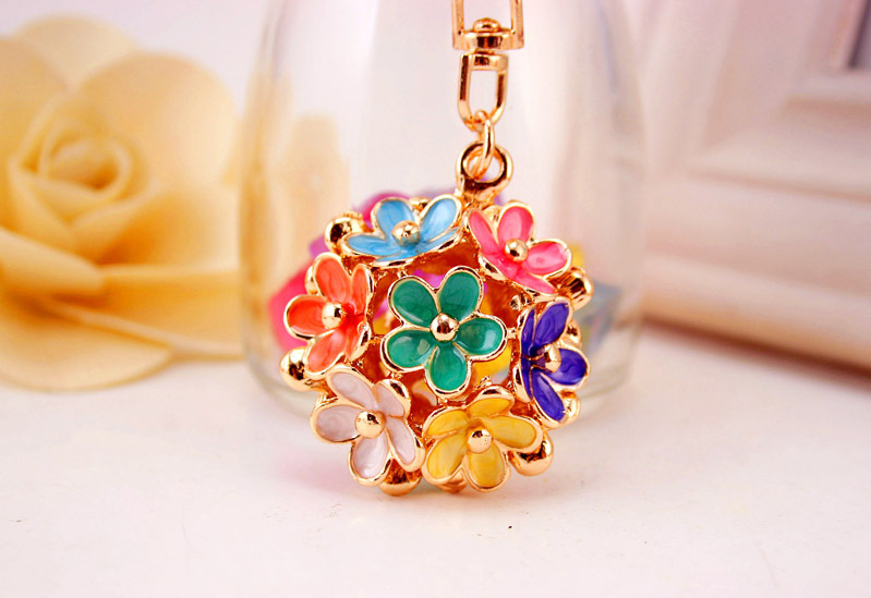 Flower Ball Cherry Blossom Flowers Bag Charms Handbag Women Keyrings Pendant