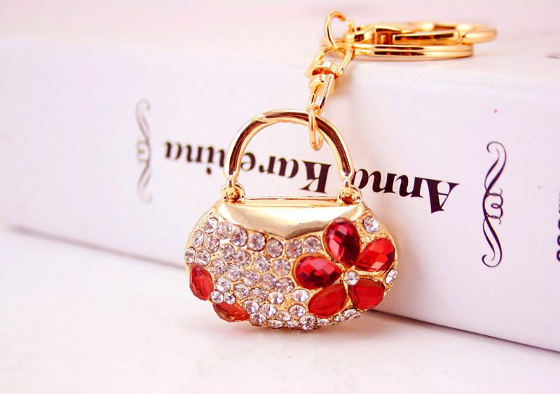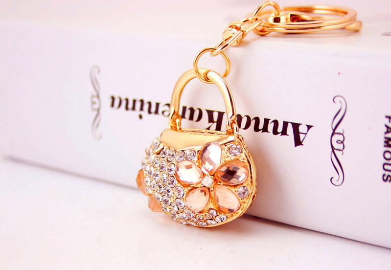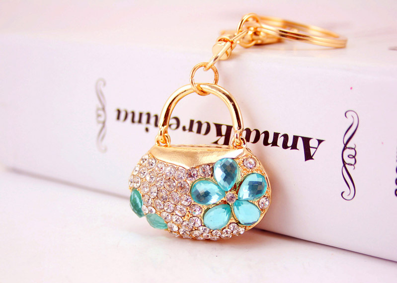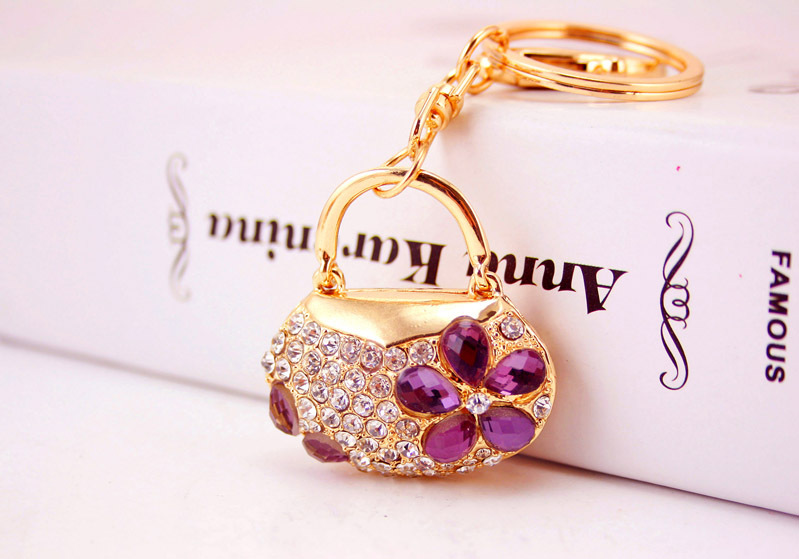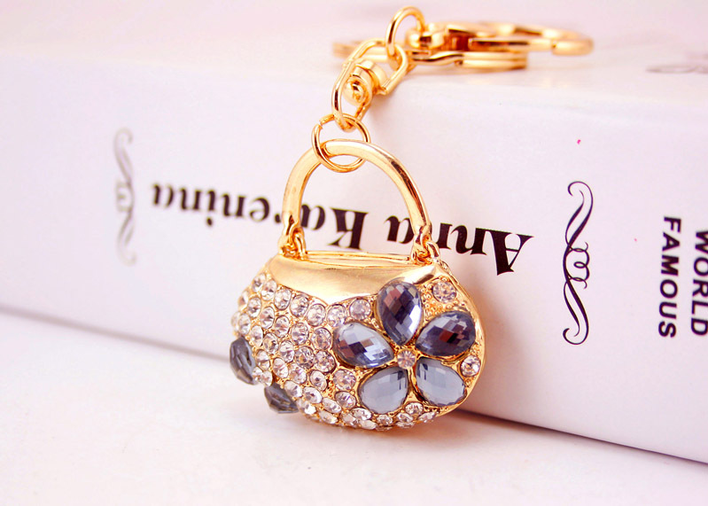Flower Handbag Shaped Crystal Diamante Rhinestone Bag Charms Handbag Keyrings Pendant Key Chain