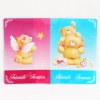 Very cute blue and pink passport cover with adroable bear angels holding cupid arrow with the phrase "Forever Love"