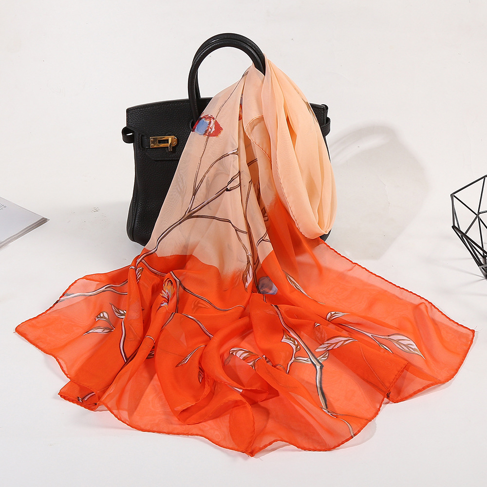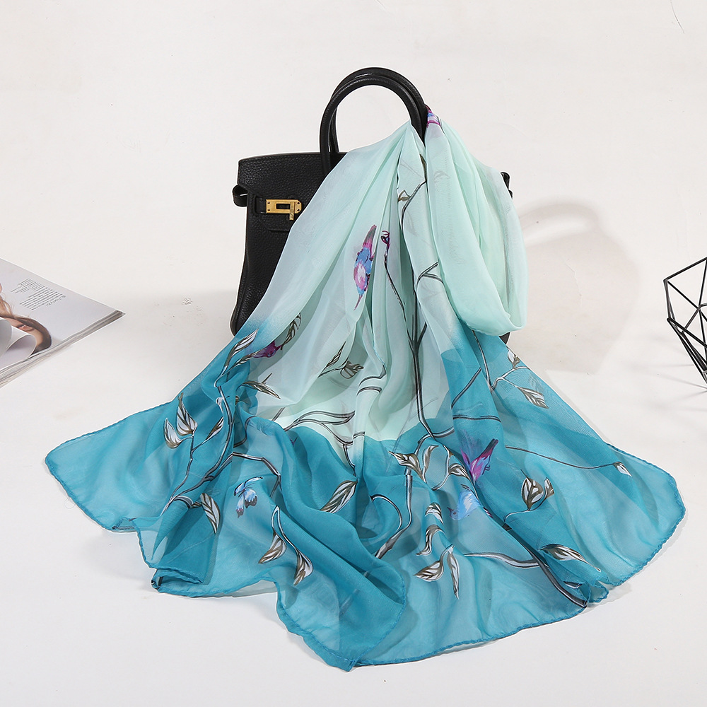 Garden Birds Butterflies Tree Flowers Fashion Ladies Chiffon Scarf Womens Shawls
